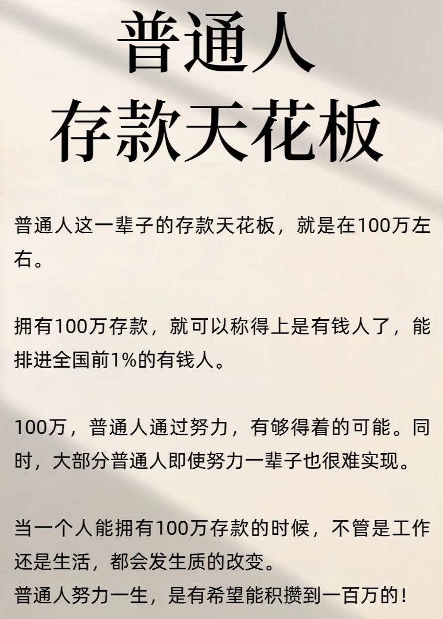 姐妹说,10年存100万,不是问题! 我说,分两种情况! 同学1李小茂,父母农村人无退休金, 李小茂夫妻都是普通工薪阶层: 男一天150元,每月4500元工资, 女一天120元,每月3600元工资, 男一年54000元+女一年43200元, 合计97200元, 不吃不喝,10年能够! 但是,老人看病,小孩教育, 房贷车贷/房租,柴米油盐, 明面的账单加上不可控的账, 一年减掉至少5万, 20年,眼瞅着钱要攒够了, 孩子又去上大学,找工作,儿子娶媳妇,闺女陪嫁妆…… 同学2王大发, 不用10年就能存够100万。 王大发两口子事业单位, 父母都有退休金。 王两口子工资一年15万, 父母退休金一年10万, 拿出一部分负责平时吃穿用度和孩子教育基金。 这样的家庭轻松存100万。 你是哪种家庭?[灵光一闪] 存款多少算穷人