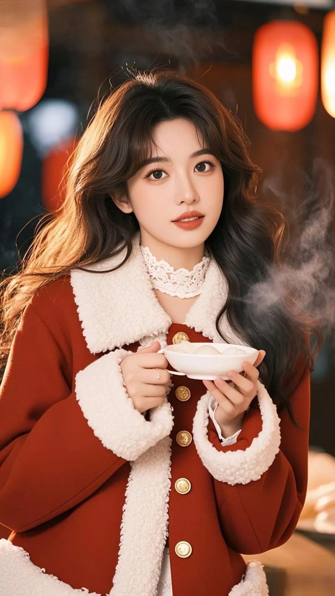 美女九宫格元宵节快乐全屏手机高清壁纸