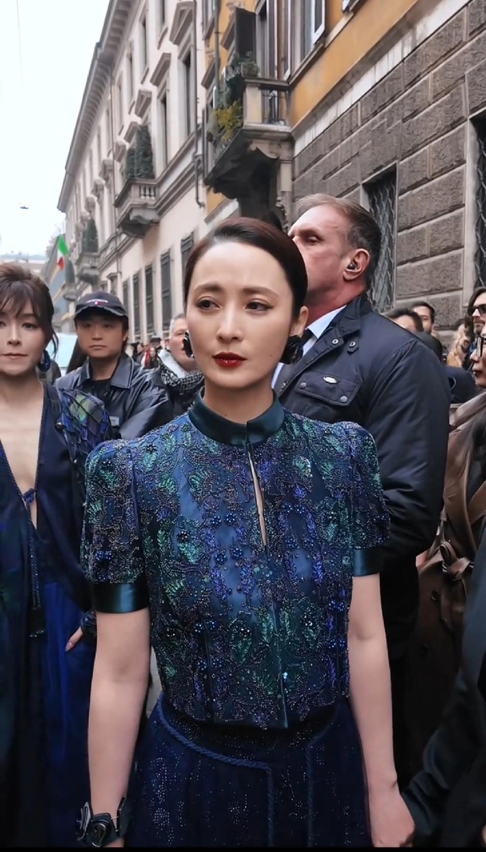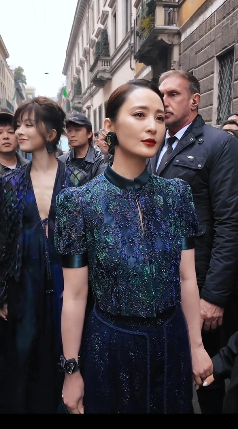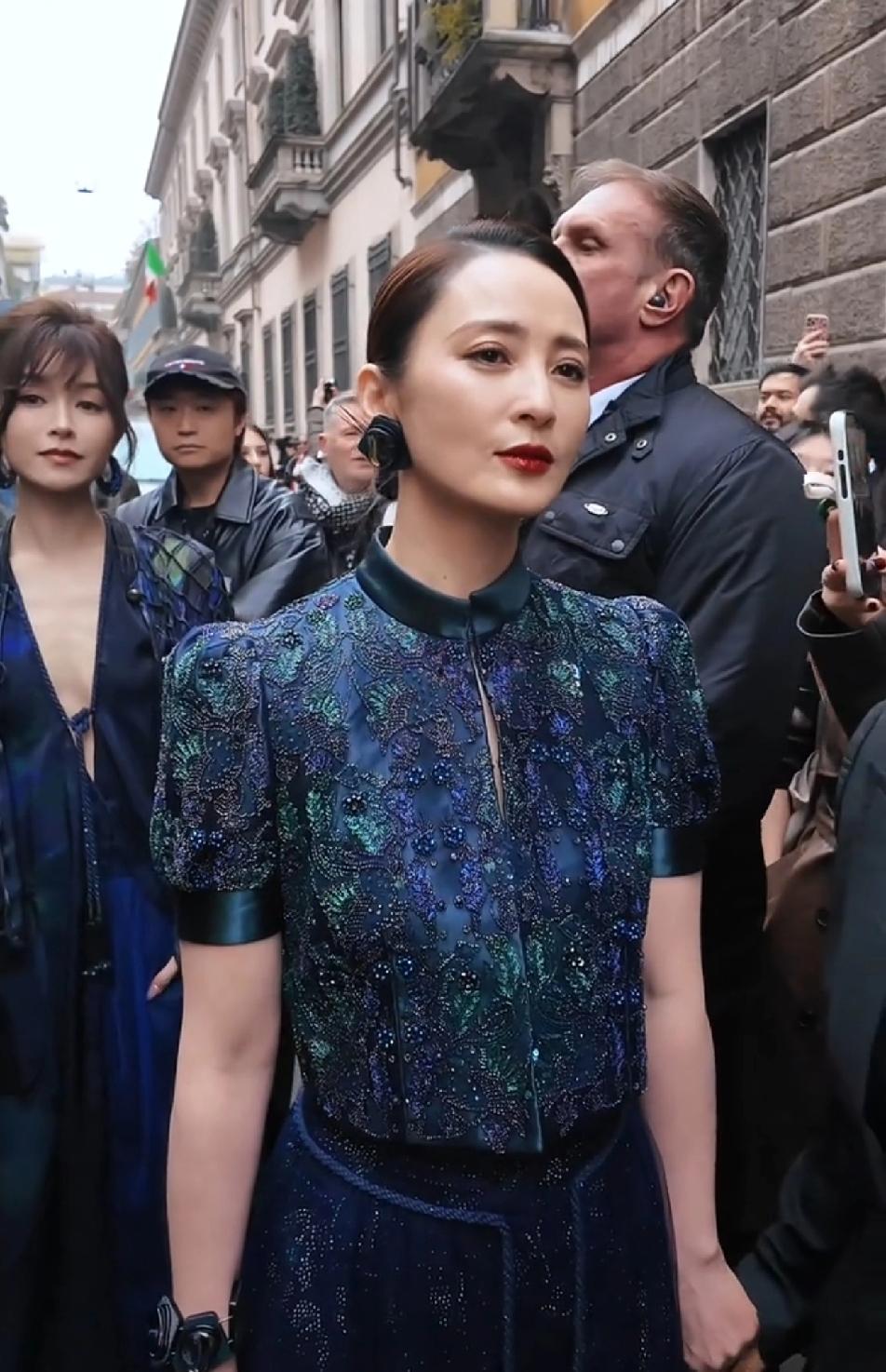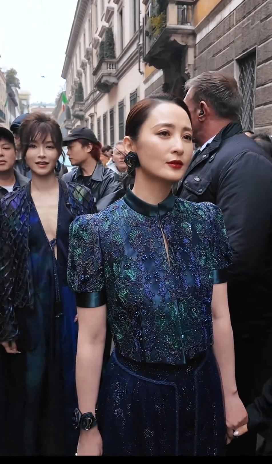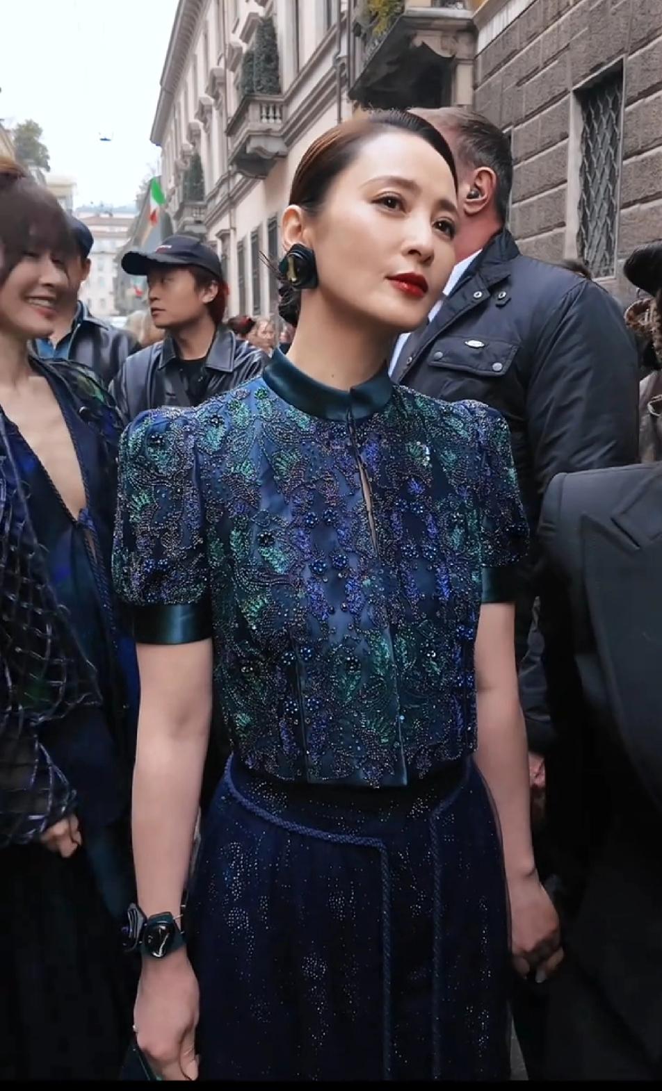 37岁的文咏珊在50岁的蒋勤勤跟前还是气势弱了好多,蒋勤勤年轻时惊为天人,50岁了一样拥有让人惊叹的美貌,这身看秀的造型也太美了吧,这蓝色特别适合蒋勤勤的年龄和气质,看起来古典优雅,大光明露额头的发型必须得有十分完美的颜值才hold得住,毫无疑问,蒋勤勤完美驾驭了这发型,50岁的脸依然这么轮廓清晰,紧致细腻,这大概就是骨相美的优势了,真的很抗老!蒋勤勤