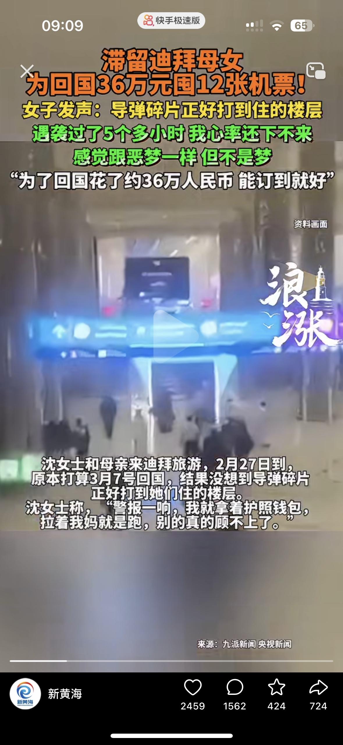 网友说:我10年都存不下36万!贫穷有的时候真能保命 沈女士和母亲在春节去迪拜旅游,本来打算3月7号回国,没想到导弹碎片正好击中她们的楼层,沈女士说警报一响,就拉着妈妈,拿着护照和钱包往外跑,别的真的顾不上了 为了回国,沈女士索性买了12张机票,花了36万,机票价格是平时的4倍!她说已经顾不了那么多,能买到回家的票就好! 在战火的边缘,每一张机票都是保命符!当和平成了奢侈品,掏空家底也要回家呀