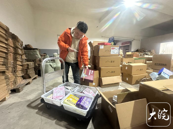 如今,夫妻俩还注册成立了商贸公司。为了方便仓储发货,他们在鸠江区郊区租下这间仓库,一年租金3万元,还特意隔出一间小房间作为办公室和直播间。业务步入正轨后,王茹辞去代课工作全身心投入,白天在仓库配货打包,晚上化身客服回复咨询,常常忙碌到凌晨两点,上午稍作休息,下午便准时赶往仓库。