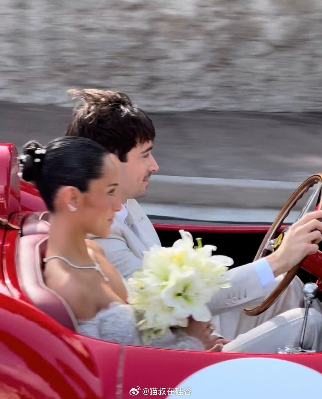 这对新婚夫妇随后在社交媒体分享了照片和视频,包括用这辆车离场的浪漫画面。亚历山德拉已将Instagram姓名改为Alexandra Leclerc,正式确认婚姻。
