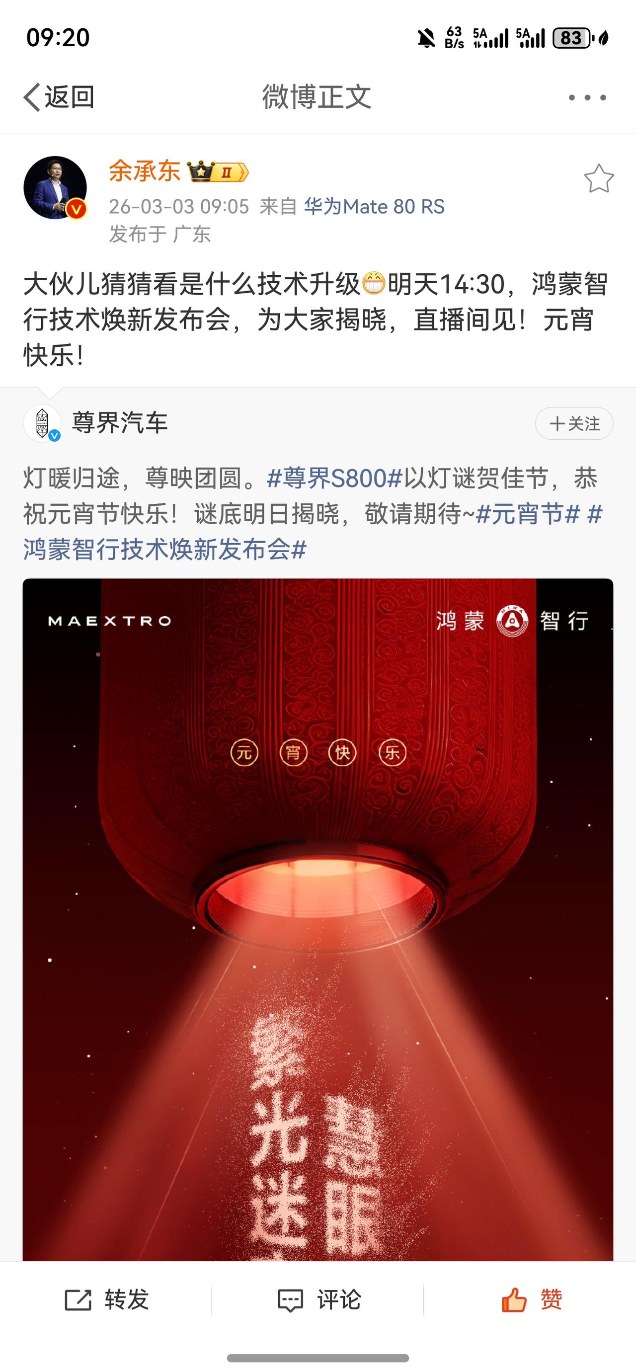 好消息!余总亲自爆料了!鸿蒙智行3月4日14:30技术发布会来了!已经曝光了超高线激光雷达,还有这个大灯技术,看着像是超光谱成像,大伙儿猜猜看是什么技术升级?我们敬请期待一下吧!