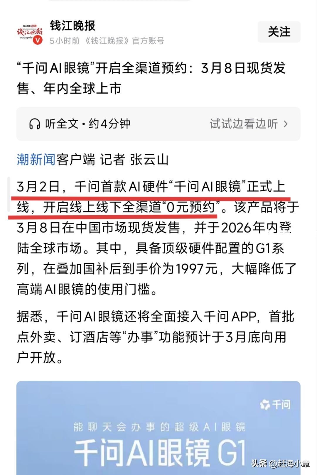 海外传来一条消息,国内还没有传开,但国外已经炸锅了!正在巴塞罗那举行的MWC大会上,中国科技成为了老外们关注的焦点。尤其是千问首款AI硬件“千问AI眼镜”的亮相,让AI硬件赛道彻底沸腾了,同时也给了Meta、谷歌等国外巨头一点小小的震撼。 说白了,千问AI眼镜在MWC大会的震撼亮相,表面看是一款中国AI硬件新品的常规发布,实则是中国科技从跟跑到领跑的关键跨越,更是在全球科技舞台上,正面硬刚西方巨头、争夺AI话语权的实力亮剑。 要知道,这可不是普通的产品亮相,而是中国AI硬件打破西方垄断的重要标志。正在巴塞罗那举行的MWC大会,历来都是Meta、谷歌等西方科技巨头的主场,长期以来,都是他们定义AI硬件的标准、引领行业潮流,中国科技企业大多只能在边缘地带发力。而千问此次不仅携首款AI眼镜重磅登场,更直接将展台设在Meta正对面,这种“贴脸同台”的操作,背后是中国AI企业积攒多年的技术底气,更是打破西方霸权、彰显中国科技实力的坚定决心。 可这绝非简单的营销噱头,而是实打实的技术硬实力碾压。千问AI眼镜并非单一硬件产品,而是“最强开源大模型+自研低功耗芯片+国民级AI助手”的全栈协同之作,在核心性能上全面超越西方同类产品。它支持112种语言实时翻译,解决了跨语言沟通的核心痛点;AR信息叠加功能让日常交互更便捷,镜片延迟不到12毫秒,续航长达12小时,彻底打破了AI眼镜“续航短、体验差”的行业困境。更值得一提的是,其官方标价仅2499元,叠加补贴后到手价不足2000元,比Meta同类产品便宜近七成,直接打穿高端AI硬件的价格壁垒,让世界级AI产品走进普通人的生活。 而千问的强势表现,更是中国科技厚积薄发的必然结果。从千问大模型开源领跑全球,积累海量技术专利和用户数据;到夸克AI助手深耕场景,沉淀丰富的交互经验;再到自研低功耗芯片突破技术瓶颈,解决AI硬件的核心痛点,中国AI产业早已完成从软件到硬件、从技术到生态的全链条布局。以前西方总傲慢地认为,中国科技只会模仿、缺乏核心创新,可千问用一款量产级AI眼镜,彻底撕碎了这种偏见——当西方巨头还在靠高价概念机收割市场时,中国已经用“高性价比+强体验+全场景”的组合,开辟出AI硬件的全新赛道。 更关键的是,这款眼镜的亮相,标志着中国科技出海进入了全新阶段。以往中国科技出海,大多依靠代工、性价比优势,在低端市场争夺份额;而此次千问AI眼镜,靠的是自研核心技术、完整生态体系,直接进军全球高端AI硬件市场。它计划年内登陆全球多个国家和地区,适配国际主流生态,这不仅是一款产品的出海,更是中国AI生态走向世界的重要载体,意味着中国科技正在从“跟随者”转变为“规则参与者”甚至“制定者”。 说实话,西方媒体和巨头的反应,恰恰印证了中国科技的崛起冲击力。面对千问的强势亮相,TechCrunch、The Verge等海外科技媒体高度关注,纷纷报道其技术优势;而BBC、CNN等西方主流媒体却集体失语,一边选择性无视中国科技的进步,一边翻炒“中国AI威胁论”。这种矛盾的态度,背后是深深的焦虑——他们能接受中国代工西方产品,却无法接受中国设计出更优的解决方案;能接受中国在低端市场竞争,却害怕中国在高端AI领域实现超越,动摇西方的科技霸权。 要清楚,AI硬件的竞争,从来都不只是企业之间的较量,更是大国科技实力的博弈,是未来产业主导权的争夺。千问在MWC大会的这一步,不只是一家企业的胜利,更是中国科技产业整体崛起的缩影。从5G通信到AI技术,从软件研发到硬件制造,中国科技正在一步步打破西方的技术封锁,建立属于自己的技术壁垒和生态优势,让世界看到中国科技的真正实力。 而未来,随着千问AI眼镜3月8日国内正式发售、年内全面进军全球市场,中国AI硬件的出海步伐只会越来越快。我们不会被西方的偏见和封锁吓倒,更不会停下创新的脚步,只会继续深耕核心技术、完善生态布局,用更硬核的产品、更强大的实力,在全球科技竞争中站稳脚跟,让中国科技成为世界公认的标杆。 说到底,千问AI眼镜在MWC大会的震撼亮相,不是中国科技崛起的结束,而是中国AI硬件引领全球的开始。这一次,中国科技不再低调内敛,而是用实力说话,用创新发声,让世界清晰看到,在AI的全新赛道上,中国已经站在了世界舞台的中央,正在书写属于中国科技的全新篇章。 以上是小编个人看法,如果您也认同,麻烦点赞支持!有更好的见解也欢迎在评论区留言,方便大家一同探讨。