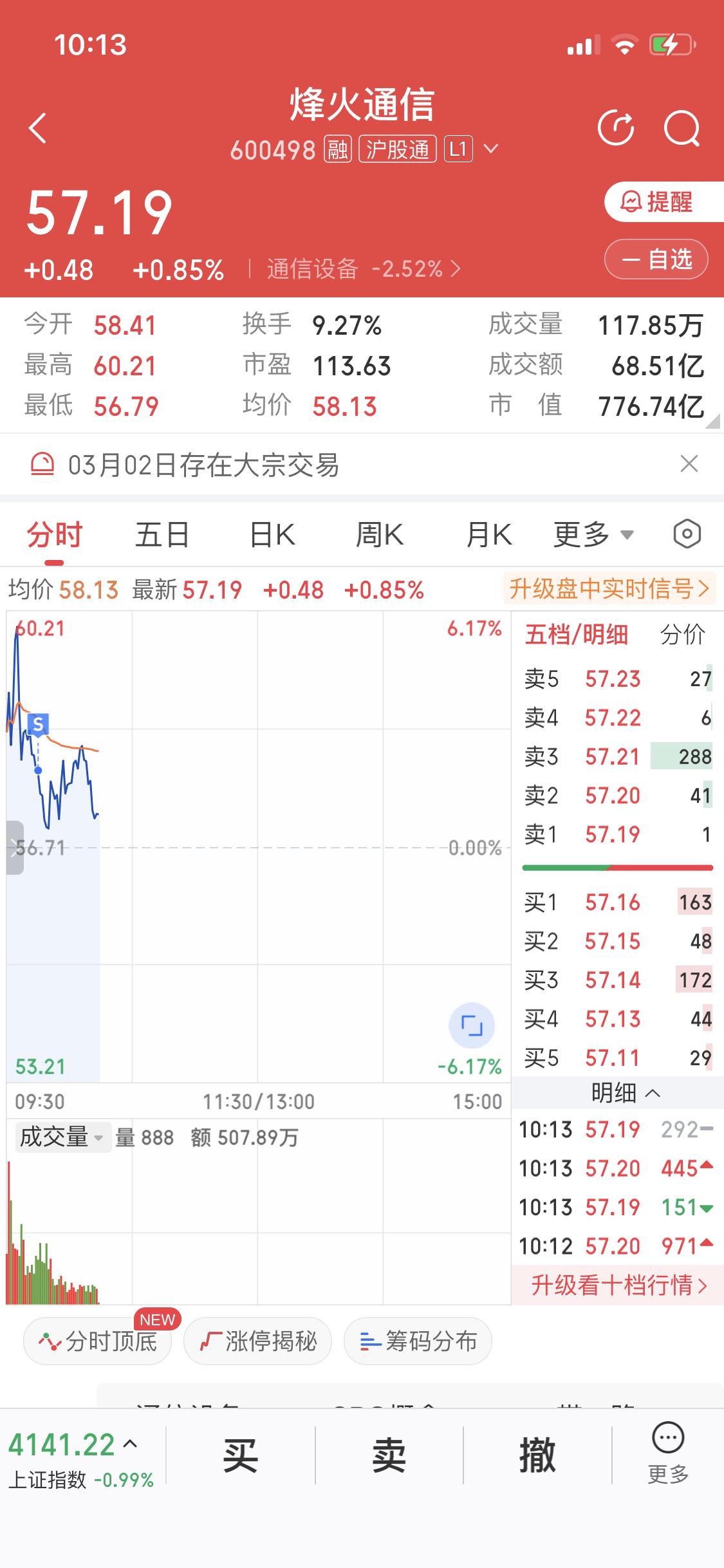 今天把烽火通信卖了,心情那叫一个爽!昨晚它出了异动公告,今天大A又补跌,我果断出手,直接吃了三十厘米大肉。 烽火通信今年累计涨幅达77%,最近还走出了2连板。不过3月2日晚它发了异动公告警示风险。像泰晶科技也是类似情况,同样走出2连板,今年累计涨幅53%,也发了公告。泰晶科技说相关业务尚处推广期,收入占比极少。 我这波操作算是抓住时机了,落袋为安,接下来再瞅准其他机会,继续在股市里搞钱!