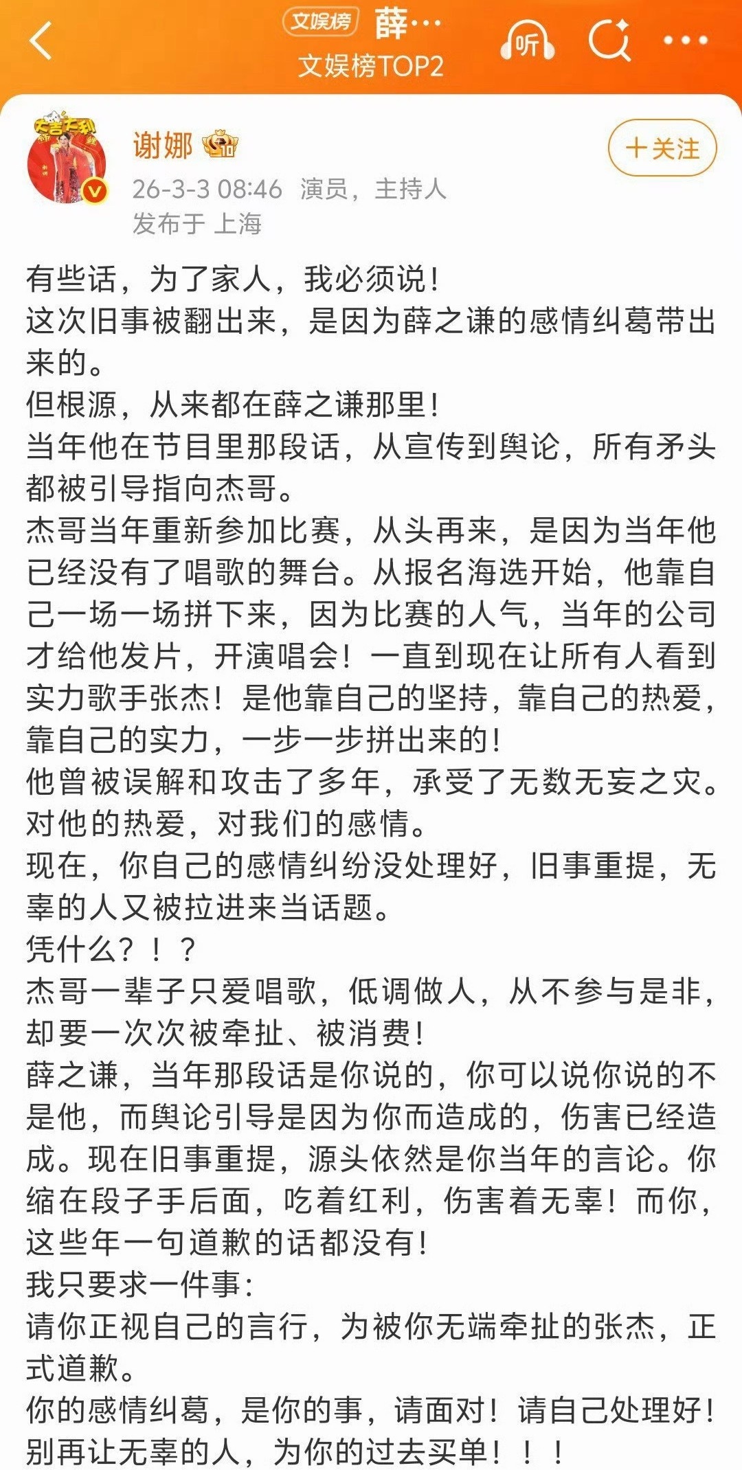 张杰前女友 被出轨是事实事情发在到这个地步了吗?怎么张杰前女友也来了?还说薛之谦