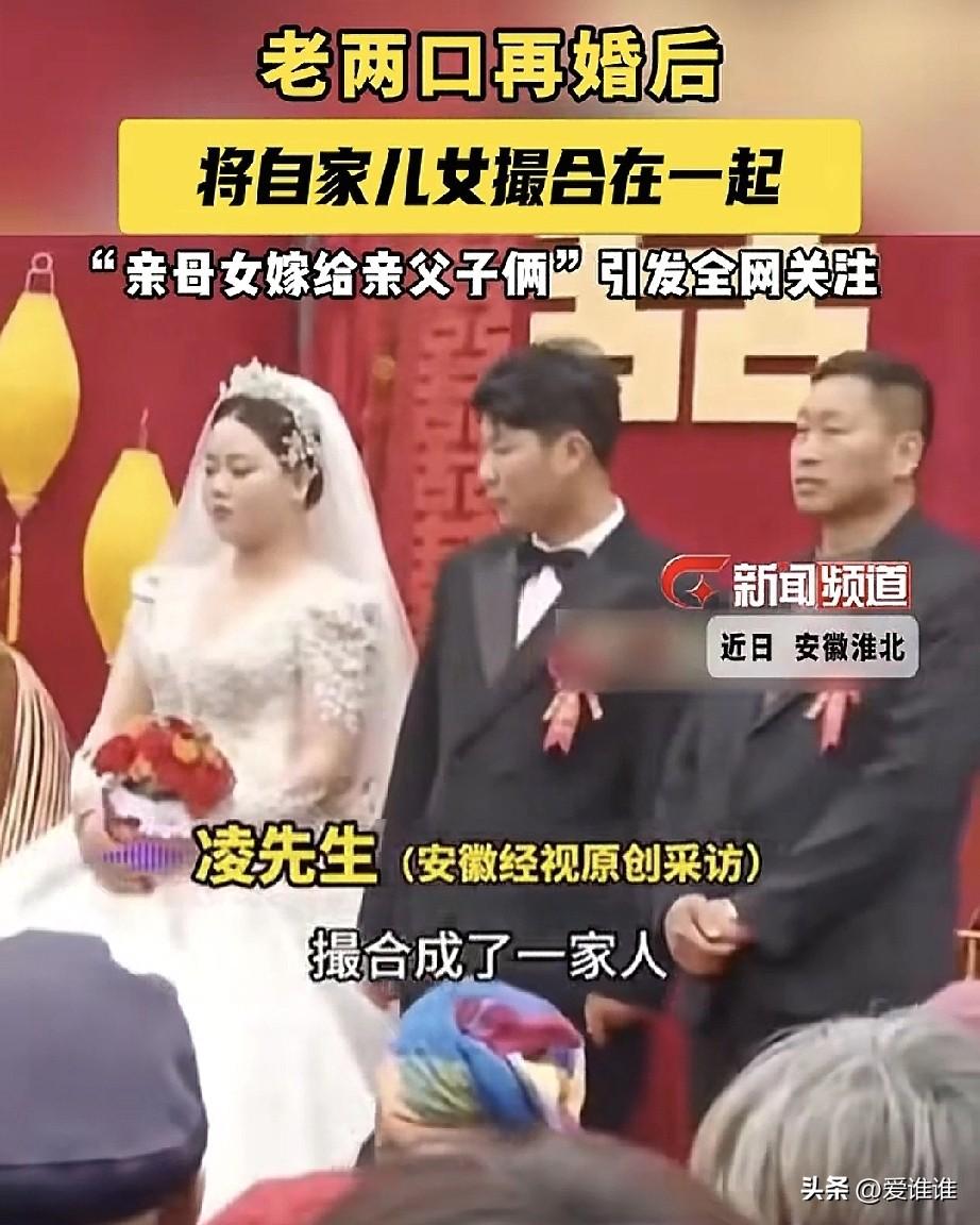 “真稀奇!”亲母女嫁给了亲父子,辈分有点乱,以后有了孩子该怎么称呼啊!三年前,一个带着儿子的父亲和一个带着女儿的母亲组成了新的家庭,一家人其乐融融,过的挺好,两个孩子得关系也很好,一块长大,知根知底,于是老两口一合计,不如让两个孩子也组成一个家庭,两个年轻人也是一拍即合,就这样两家人彻底“亲上加亲!” 有人觉得这样违法,可是按照咱们的规定,他们这样做还真的不违法,因为两人虽然是传统意义上的兄妹,但却没有血缘关系,更不是直系亲属,所以,符合结婚要求,就是关系上有点绕,为难的是以后孩子出生了不知道该怎么称呼自己的家里人。我觉得这没什么,没有血缘关系,又是知根知底,以后有矛盾也好解决!