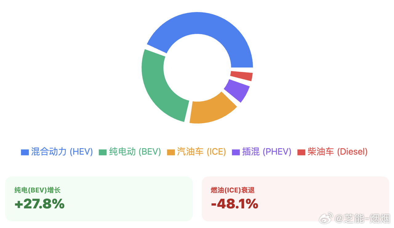 燃油车份额快速萎缩,混动小幅下滑,纯电动逆势大涨,成为市场最大亮点,电动化进程明显提速。品牌格局分化,法系占据主导,德系普遍承压,特斯拉强势反弹。