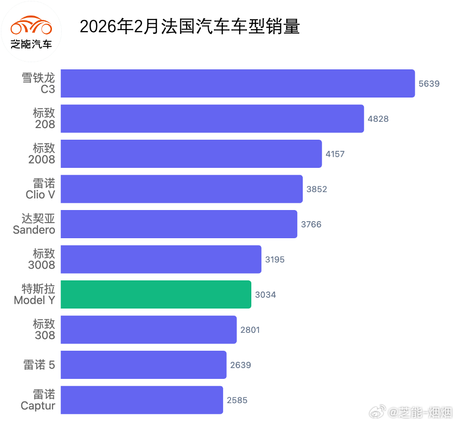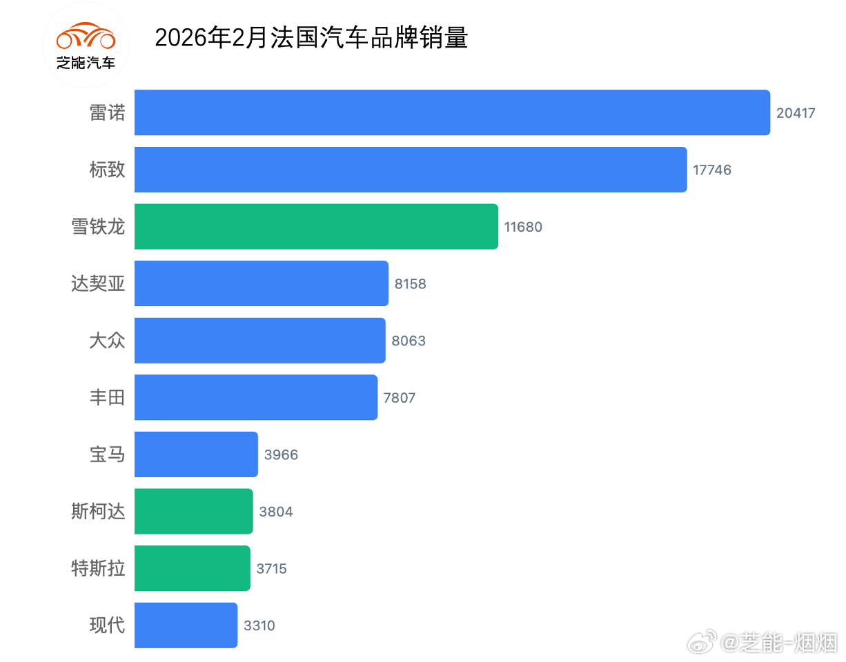 2026 年 2 月法国车市持续低迷,销量再度大幅下滑,市场处于历史低位。消费信心不足、政策变动与能源切换观望情绪共同影响市场。