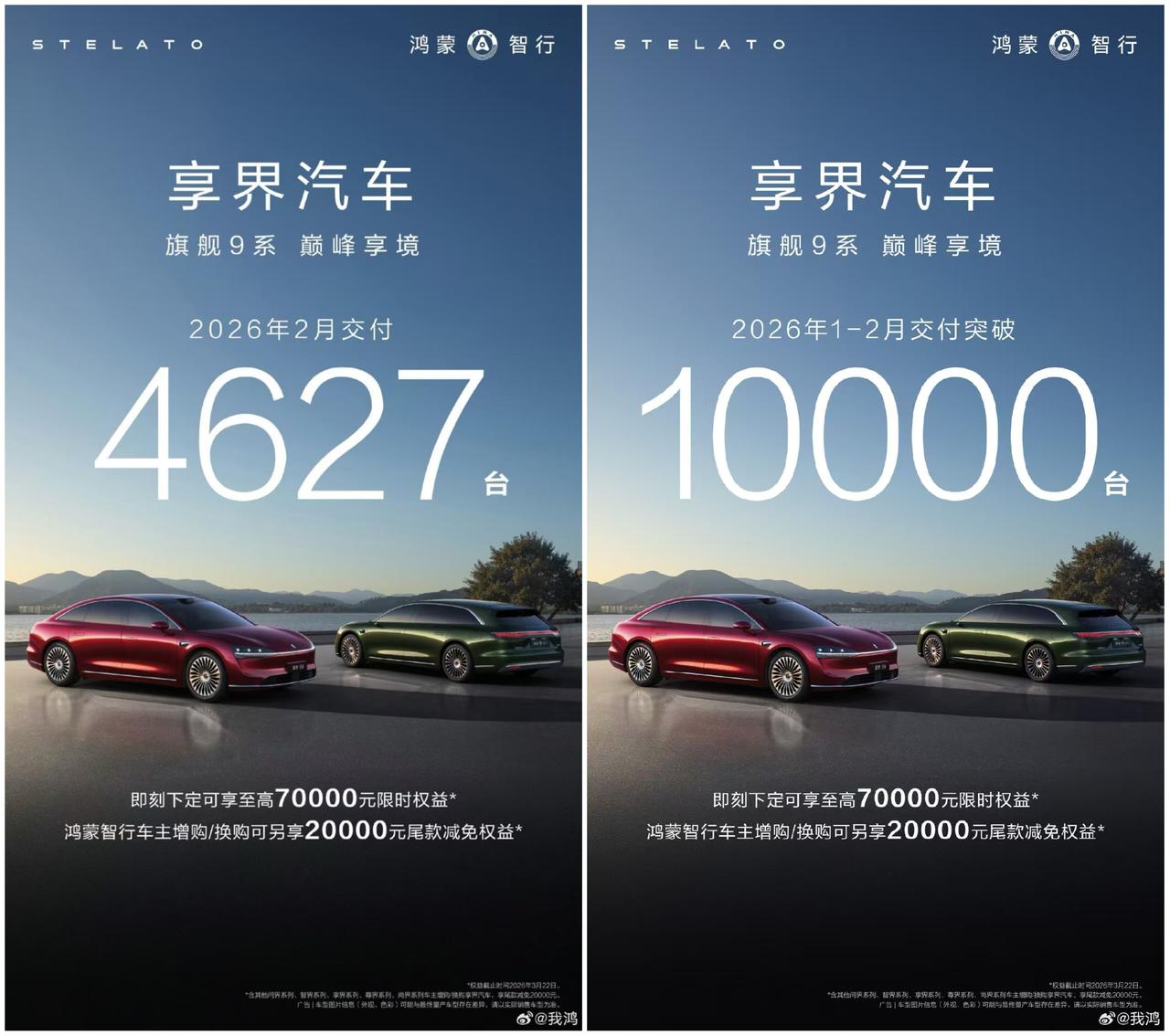 鸿蒙智行享界2026年2月交付4627台,2026年1月和2月累计交付突破10000台!非常不错的成绩,比智界好太多了,智界还是要多想想办法,最后是全身心紧跟华为,争取把口碑和品牌提升上来,不然销量很难起来的,加油吧!