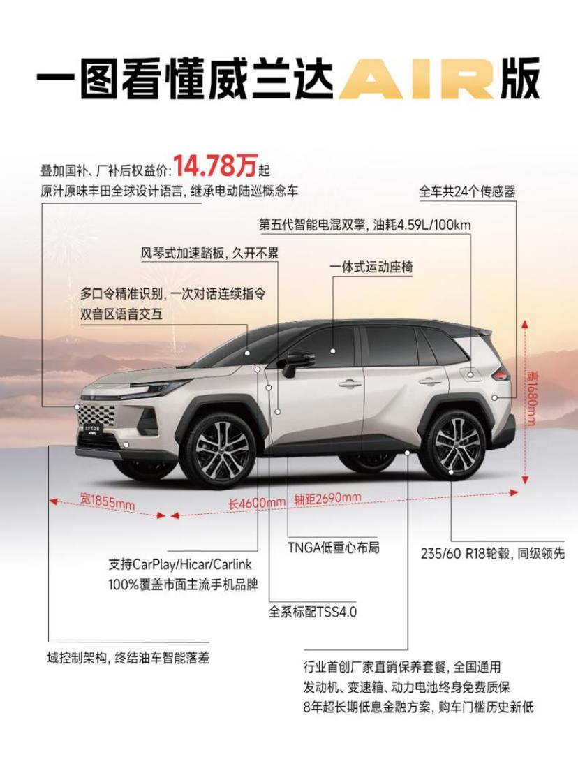 广汽丰田威兰达:厂家兜底终身质保,开坏免费修 买车的终极焦虑是什么?是出了质保期后,发动机、变速箱坏了修不起。广汽丰田针对全新换代威兰达,提供厂家兜底的终身质保。 质保范围: 动力电池终身质保(双擎版):电池衰减、故障,厂家免费维修或更换。 动力系统终身质保(发动机、变速箱):核心机械部件,终身免费修。 “厂家兜底”意味着什么? 不是4S店保,是广汽丰田汽车有限公司直接保。哪怕这家4S店倒闭了,你拿着行驶证去任何一家广汽丰田店,厂家都认账。这比第三方延保可靠得多。 条件:首任车主,非营运车辆,全程在广汽丰田渠道保养(用那个2099的套餐正好符合)。这个条件非常容易达到。 价值:一台车的发动机如果自费大修,可能要2-3万。混动电池如果自费换,可能要5-8万。有了终身质保,这台车你可以放心开到报废,维修成本为0。这极大地提升了车辆的残值率和长期使用价值。 结合8年贷款:你贷款8年,质保终身。相当于你还完贷款,车还有大半辈子是“免费维修”的。广汽丰田这一招,彻底解决了用户的长远顾虑。