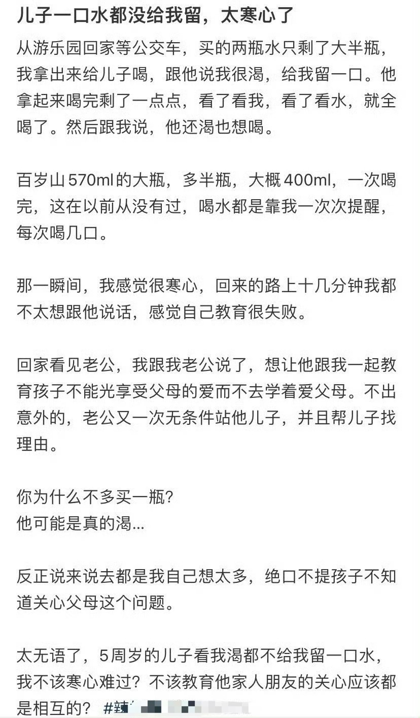 儿子一口水都没给我留,太寒心了
