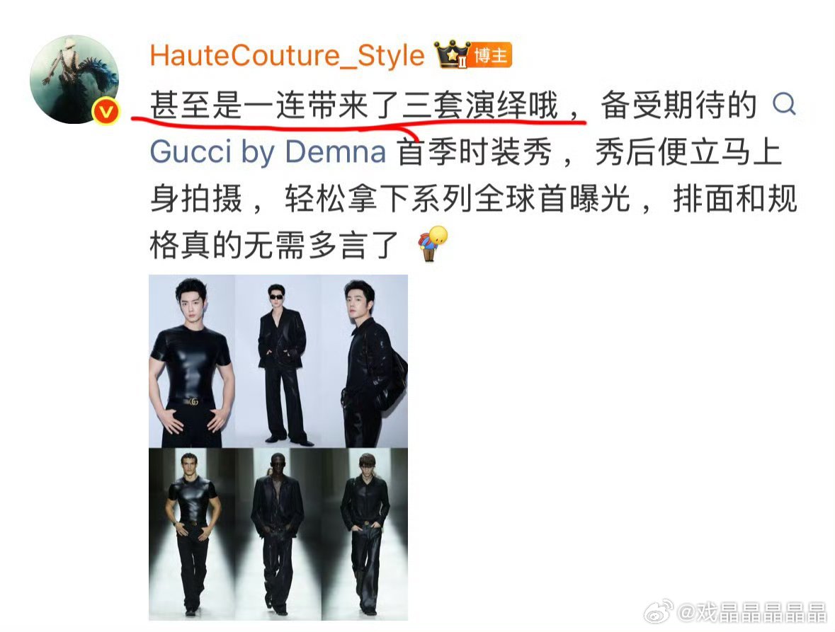 GucciPrimavera肖战秀前预热是唯一的,大秀座次是最好的,秀后全球首穿