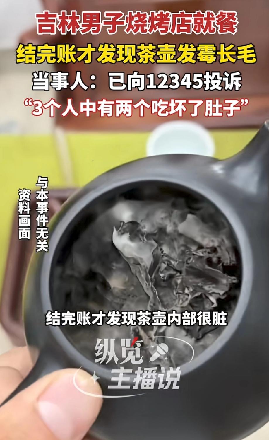 吉林,男子带朋友去烧烤店吃饭,刚坐下,店员端上一壶茶水。三人喝了一杯,肚子就不舒服。等结账时,男子随手拿起茶壶往里一看,壶底全是污垢,已发霉变质,他找店老板要说法,工作人员却称,老板在国外打工。男子一气之下选择投诉维权。网友:喝下去的那一刻,想想都反胃。 龙先生怎么也没想到,自己会因为一壶茶水,闹得既恶心又窝火,至今回想起来仍觉得反胃。 事情还要从龙先生和两位朋友聚餐那天说起。 当天傍晚,忙完工作的龙先生想着许久未见好友,便主动邀约两人一起去烧烤店小聚。 天气微凉,吃点热乎烧烤、聊聊天,本是再惬意不过的安排,三人一路说说笑笑走进店里,刚找位置坐下。 店员便热情地迎了上来,麻利地递上菜单,转身就端来了一壶免费茶水。 按照店里的惯例,入座先上茶水,龙先生和朋友也没多想。 一天忙碌下来,几人都有些口渴,店员刚把茶杯倒满,三人便端起杯子各自喝了一杯。茶水入口平淡无奇,没有任何异味,谁也没有察觉到异样。 可没过几分钟,诡异的情况就出现了。 龙先生最先感觉到腹部隐隐作痛,起初他还以为是自己空腹喝酒、吃辣的老毛病犯了,便强忍着没吭声。 可紧接着,身边的两位朋友也相继皱起了眉头。 两个人异口同声表示,肚子怎么有点疼?有点反胃,不太舒服。 三人对视一眼,心里同时泛起嘀咕。刚进店只喝了一杯茶水,还没开始吃烧烤,不可能是食物的问题,难道是茶水有问题? 可刚才喝的时候,明明没有怪味。龙先生压下心里的不适,想着先吃完这顿饭,别扫了朋友的兴,便强忍着腹痛和恶心,和朋友勉强点了烧烤。 用餐过程中,腹痛的感觉一直没有消失,反而越来越明显,几人都没了吃饭的心情,随便吃了几口就打算结账离开。 走到前台结账时,龙先生越想越觉得不对劲。好好的三个人,没吃任何东西,只喝了一杯店里的茶水,就同时肚子不舒服,这绝不是巧合。 强烈的直觉告诉他,问题一定出在那壶茶水上。 他转身回到餐桌旁,一把拿起那只还剩小半壶水的茶壶,毫不犹豫地掀开壶盖。 只看了一眼,龙先生瞬间头皮发麻,一股难以形容的恶心感直冲喉咙。 只见茶壶内部,壶底和内壁附着着一层厚厚的污垢,黑黄交错,边缘处已经明显发霉,一块块霉斑附着在壶壁上,一看就是长期没有彻底清洗,反复使用滋生出来的脏东西。 自己和朋友刚刚喝下去的,竟然是用发霉脏茶壶泡出来的水! 一想到这里,龙先生胃里翻江倒海,愤怒瞬间压过了腹痛。 他拿着茶壶直接走到店员面前,指着壶里的霉斑质问:“你们这茶壶多久没洗了?都发霉了!我们喝了茶水全都肚子疼,你们怎么解释?” 本以为店家会道歉、处理,可让龙先生万万没想到的是,工作人员非但没有愧疚,反而态度冷淡,甚至有些敷衍。 “老板在国外打工,这事我做不了主,也管不了。” 龙先生越想越气,自己和朋友无缘无故遭罪,店家却如此不负责任。 为了讨一个说法,也为了避免更多人像他们一样受害,龙先生当场选择投诉维权,将烧烤店卫生不达标、店家推卸责任的情况如实向12345投诉反映。 消息传开后,不少网友都表示十分气愤:“免费茶水也不能这么脏吧!喝下去的那一刻,想想都反胃!” 也有人表示,“应该是服务员年前忘了清洗。” 对龙先生来说,这不是借口,年前年后都要清洗吧,卫生如此差劲,出事了谁负责,这顿饭吃得既糟心又恶心。 《食品安全法》第33条规定:餐具、饮具和盛放直接入口食品的容器,使用前必须洗净、消毒,保持清洁 。 店家已违反食品安全相关规定,必须承担相应责任。 龙先生可以依法主张,退还餐费,赔偿身体不适带来的损失。 食品安全无小事,哪怕是一壶免费茶水,也不能忽视卫生底线。