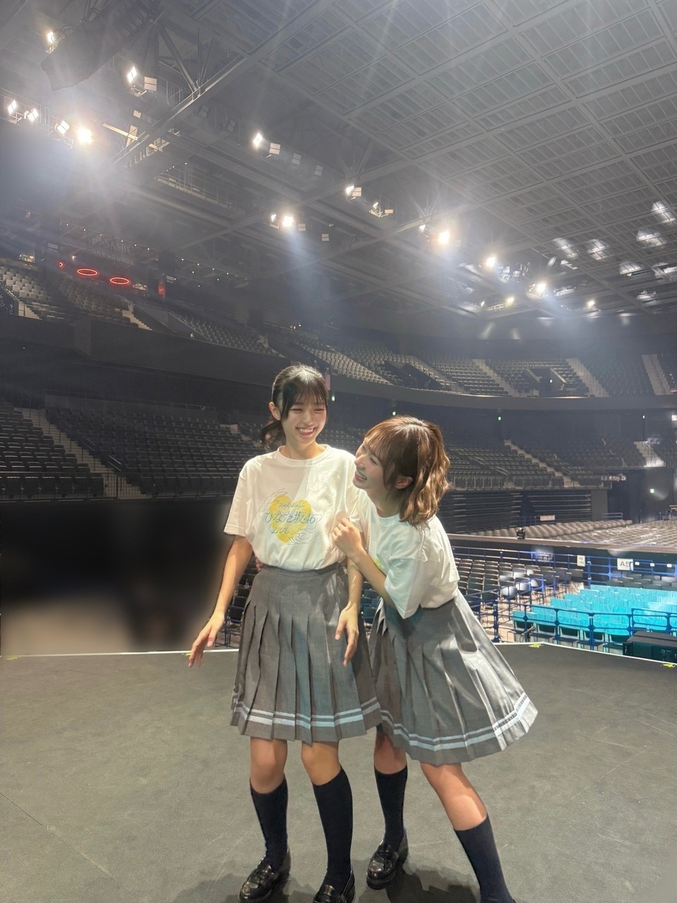 平尾帆夏「みんなと写真撮ったんだ〜陽パワーに満ち溢れた、すてきで大好きな仲間たちです!みんなほんとにありがとう。今回は初の試み!両日ほぼセンターが違うサプライズ、みんなびっくりしたかな〜〜??」
