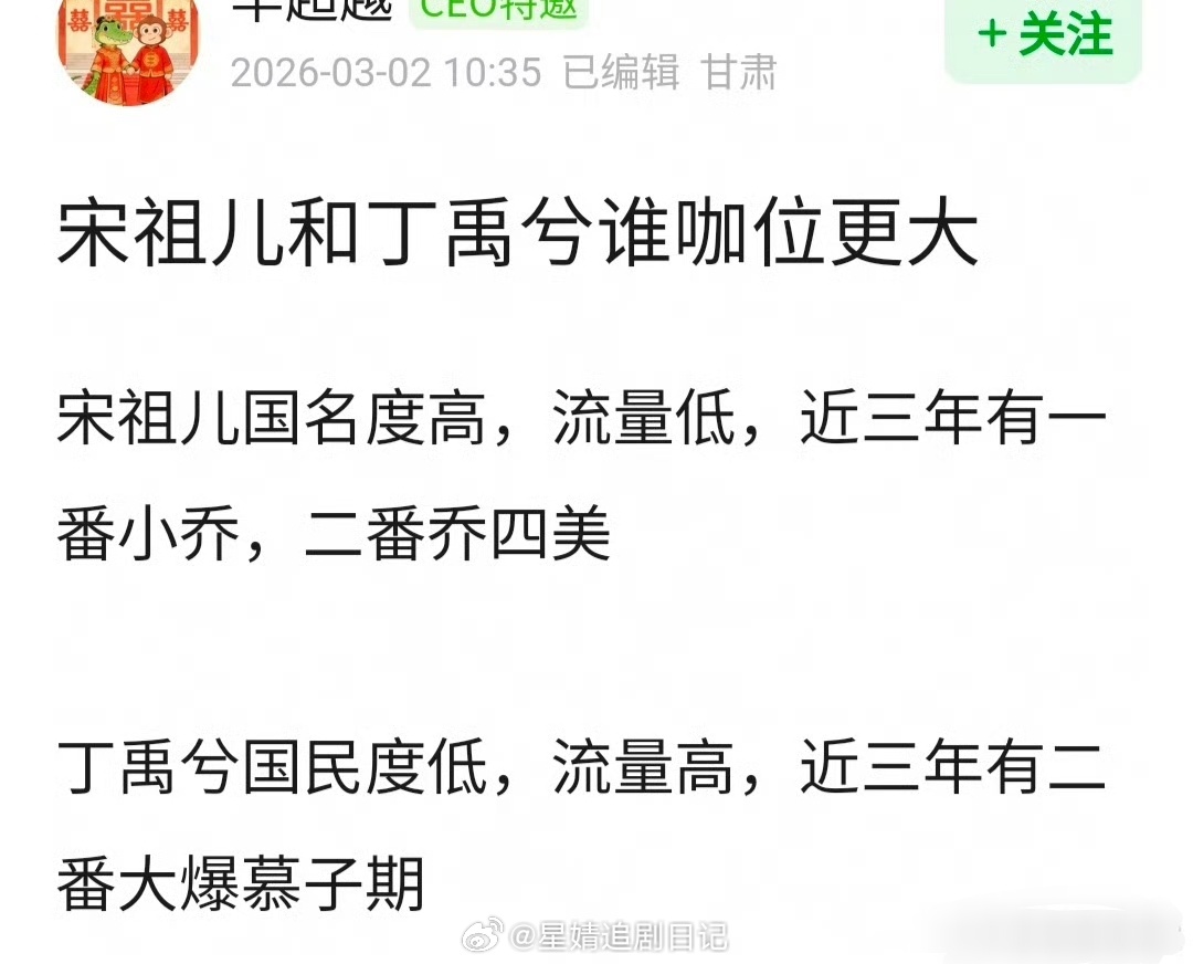 网友问宋祖儿和丁禹兮谁咖位更大?丁禹兮宋祖儿司宫令