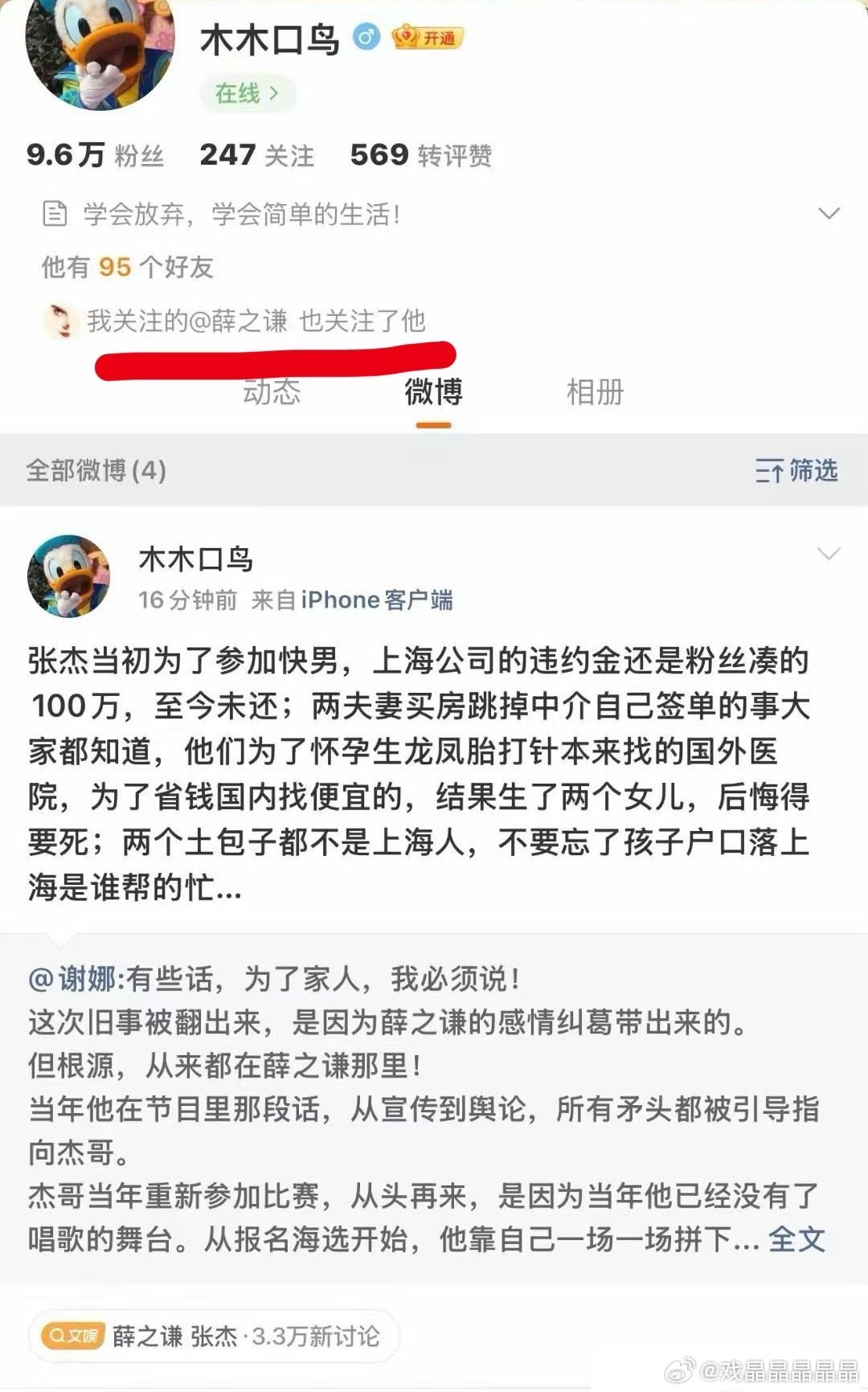 薛之谦好友吐槽张杰谢娜当年工作人员爆料和疑似薛之谦好友的吐槽。