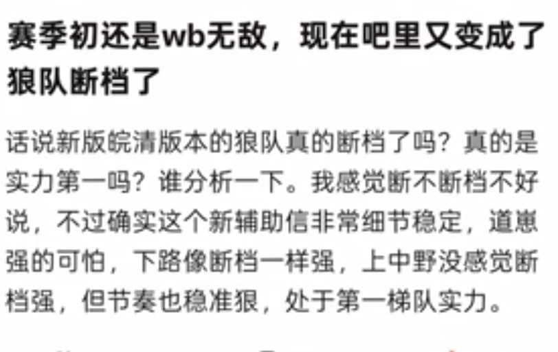 kplk吧热议赛季初还是wb无敌,现在怎么又变成狼队断档了?