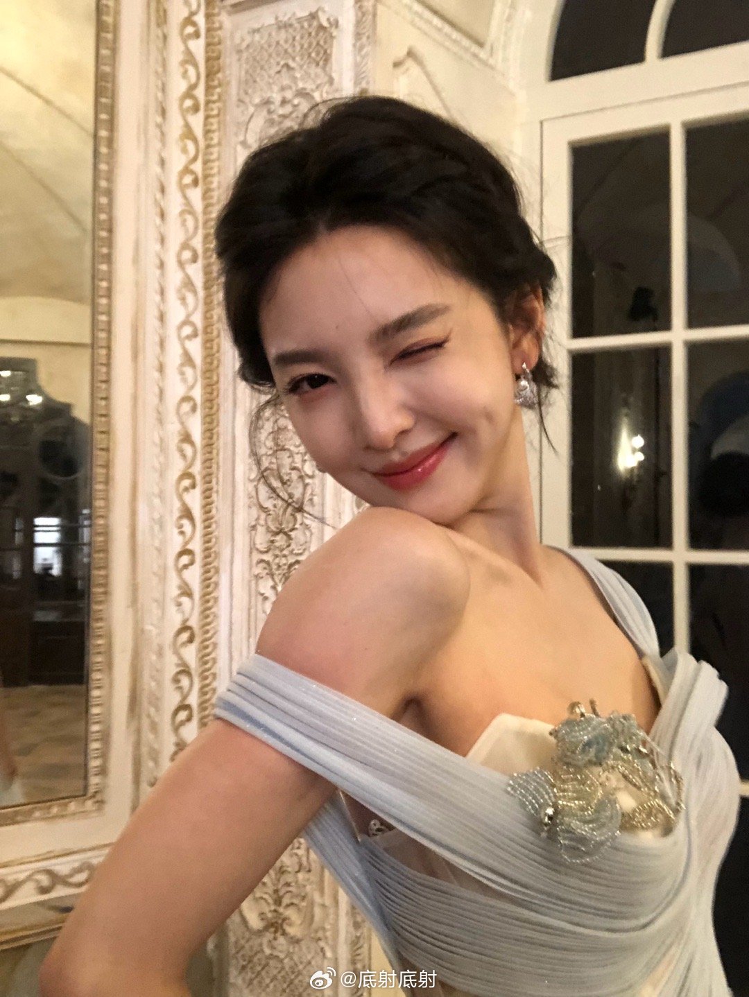 章若楠蓝色梦幻灵动公主风章若楠亮相直播现场,身着秋冬系列的淡蓝色薄纱礼裙,搭配超