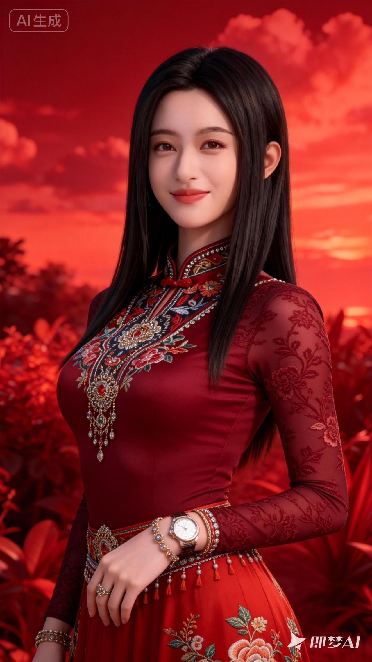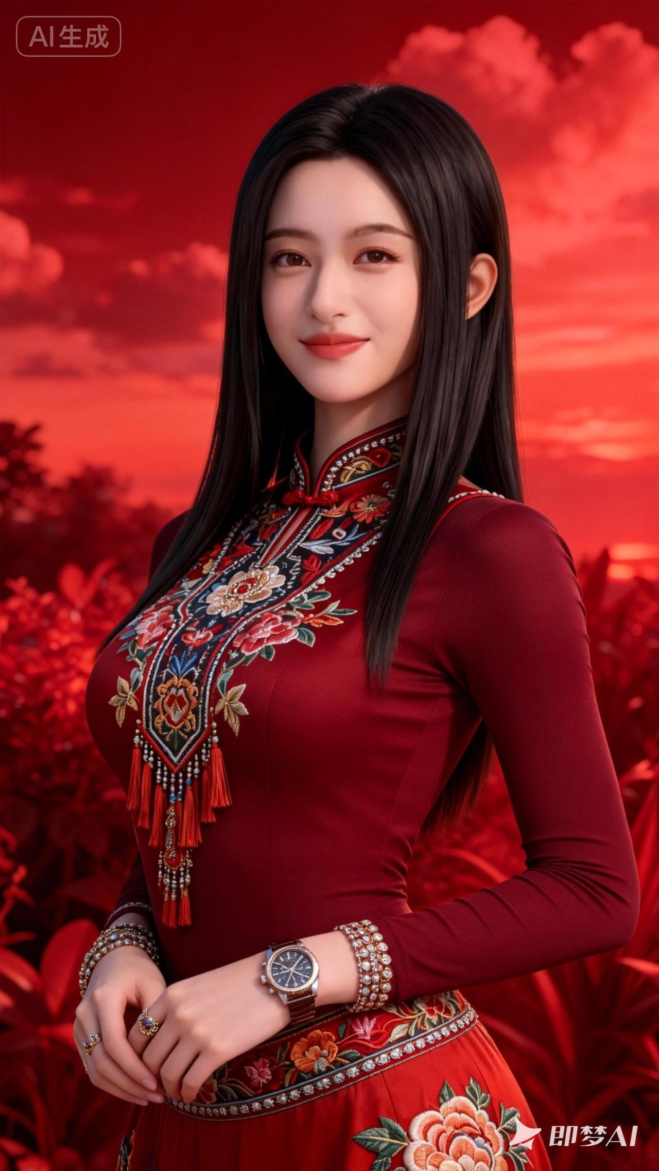 惊艳古风美女,红衣华服,韵味十足!