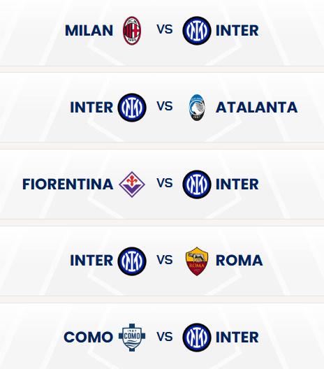 国际米兰接下来五场意甲比赛,只有全败才会丢冠军。 第二名AC米兰,欧冠16强球队亚特兰大,降级区球队佛罗伦萨,强队罗马和科莫。 看样子都是硬骨头,实际上好好踢都能稳中求胜。 Ac米兰落后10分,其实已经放弃了。[大金牙]
