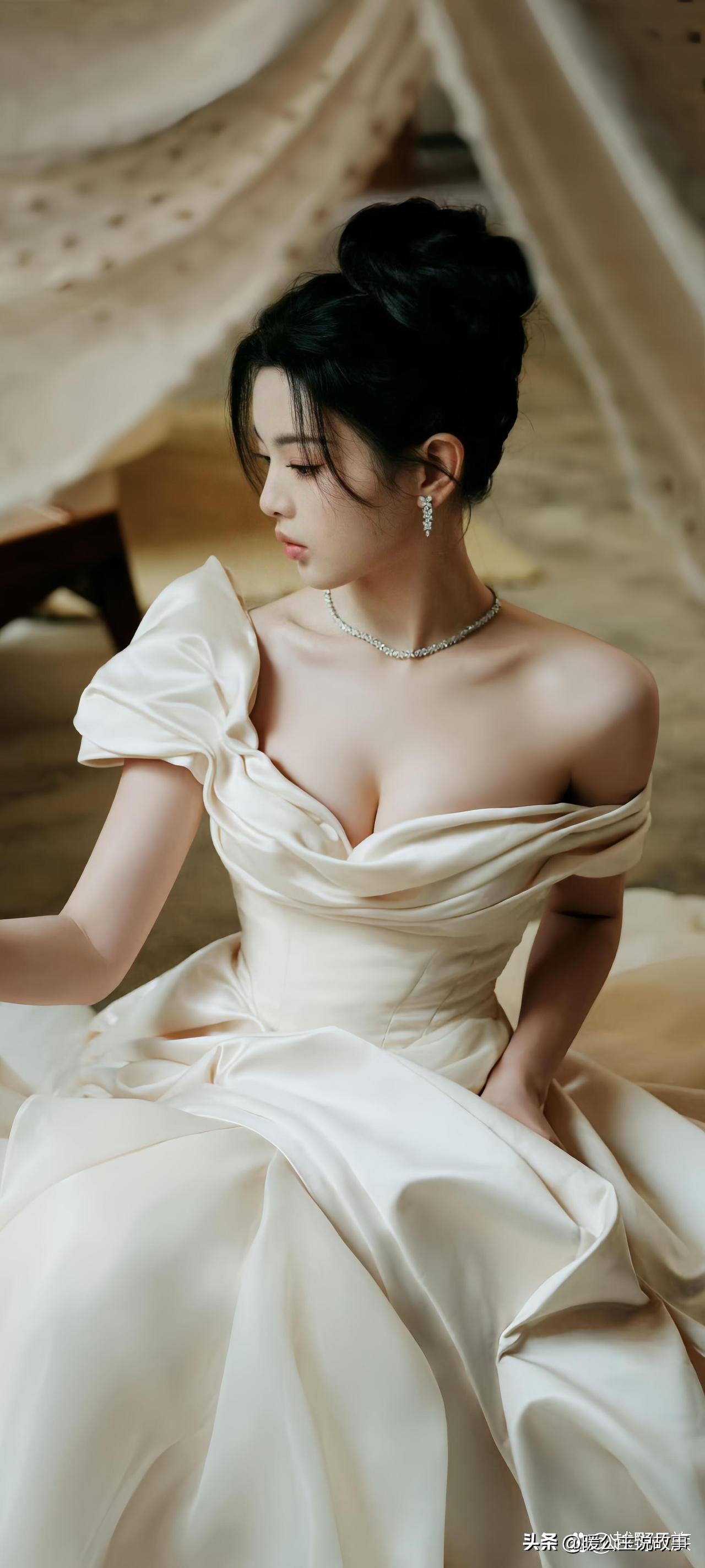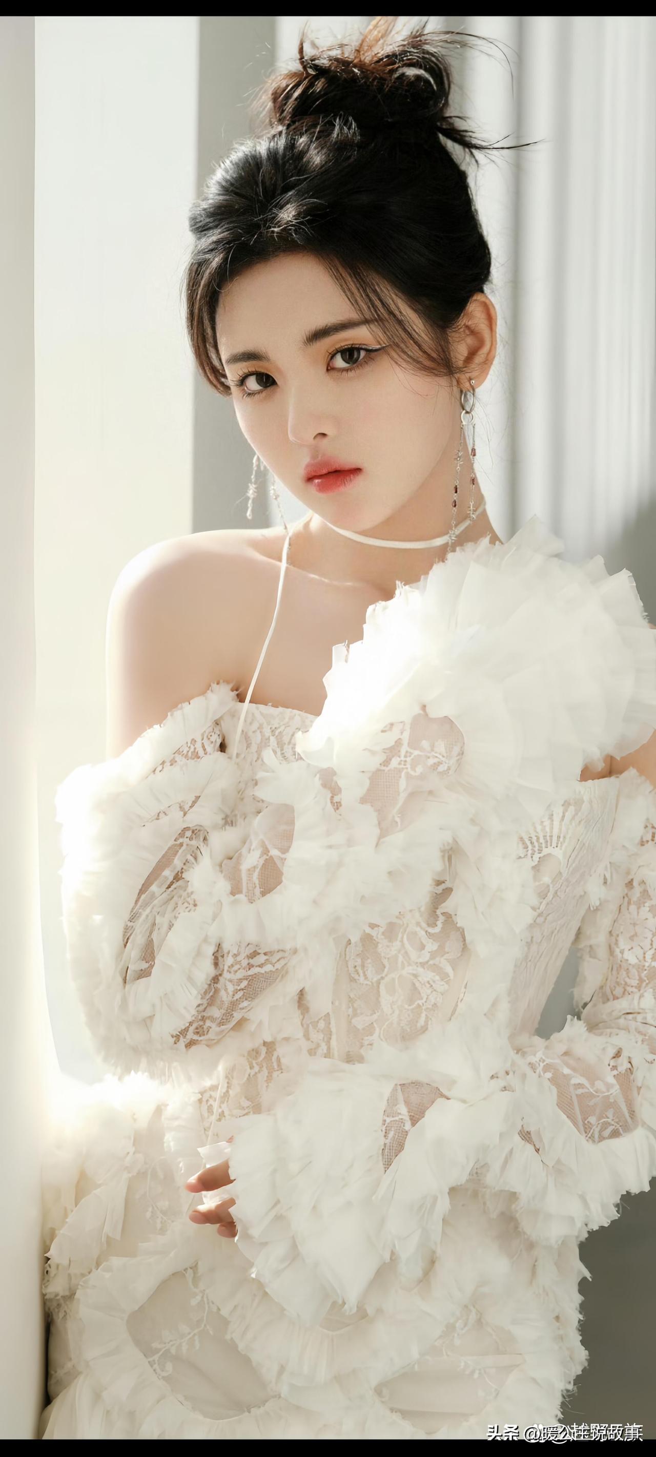 吴宣仪穿搭写真,抹胸白纱裙,浪漫甜美的少女穿搭。