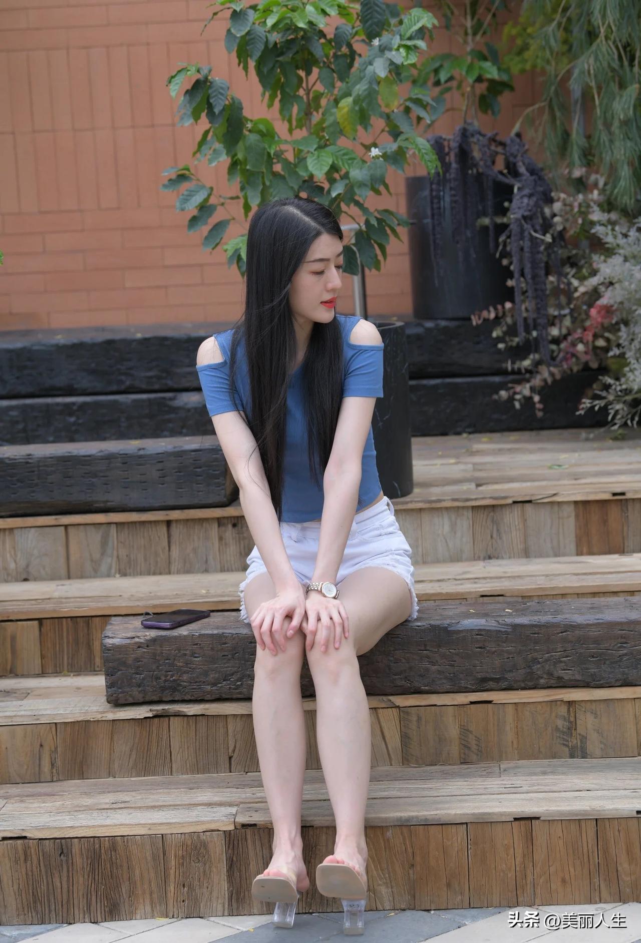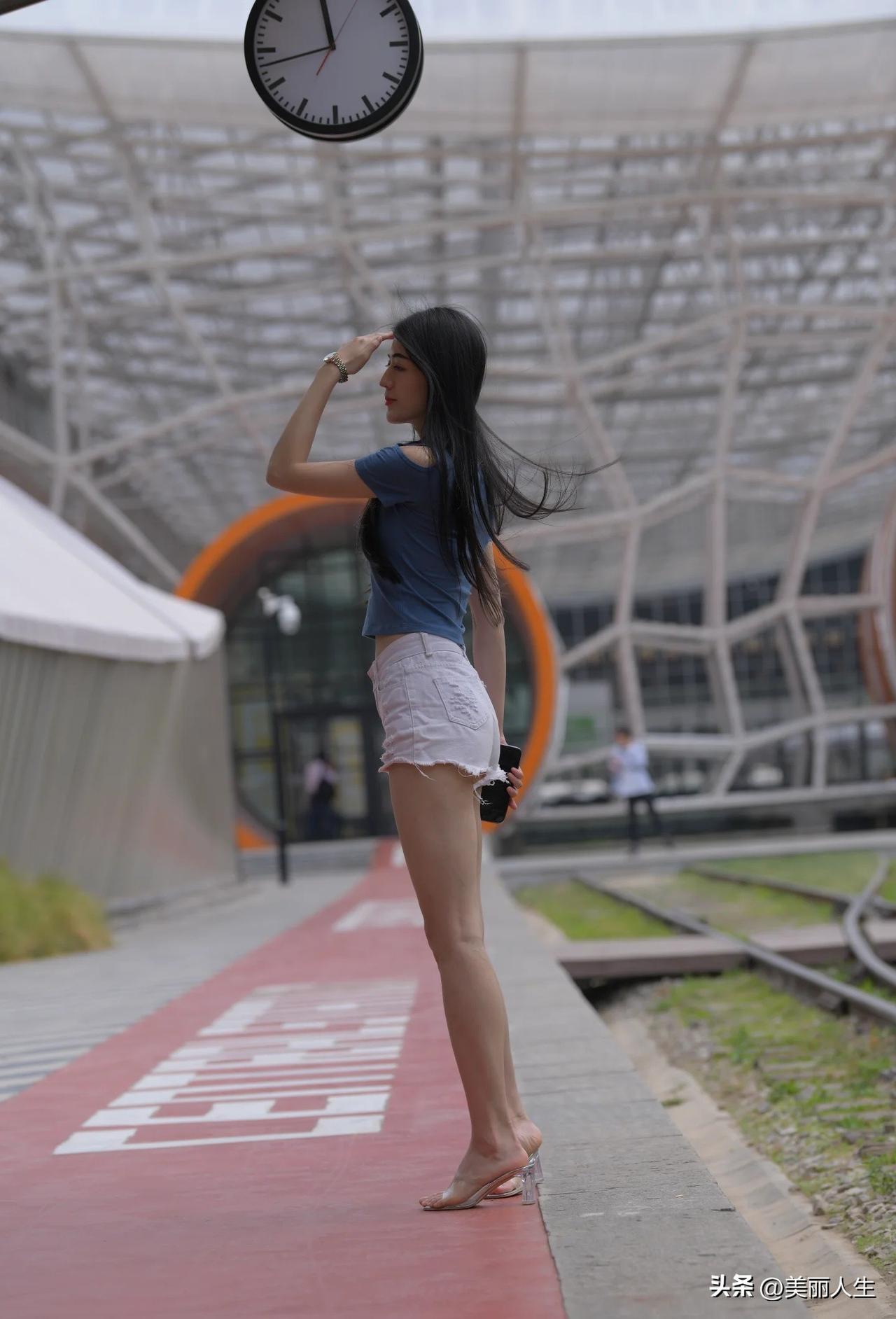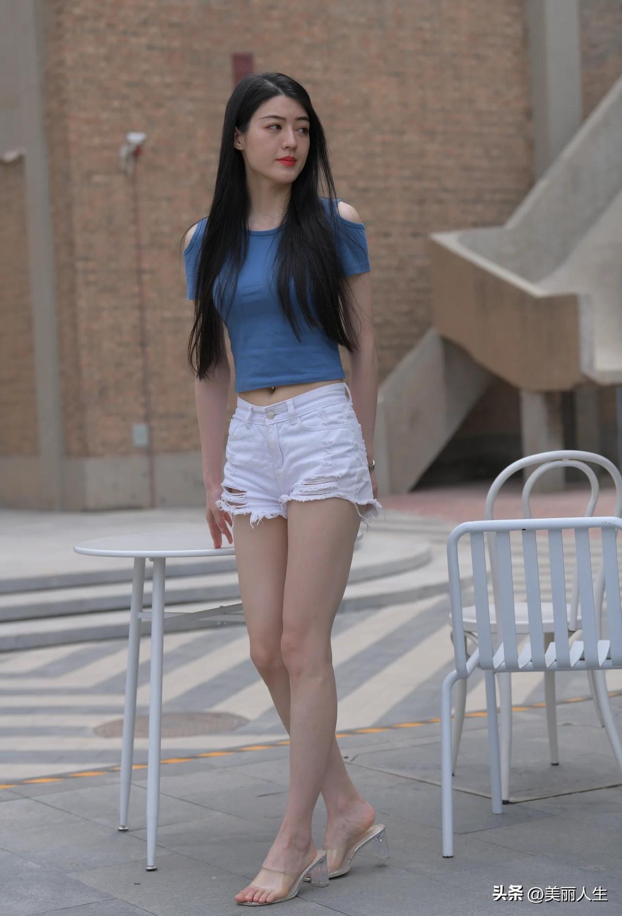 这姑娘穿得真时尚,走路带风!