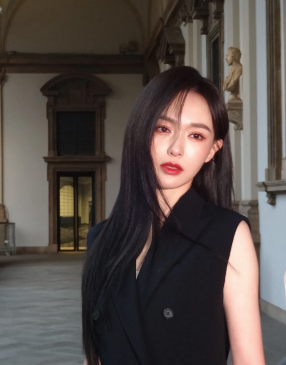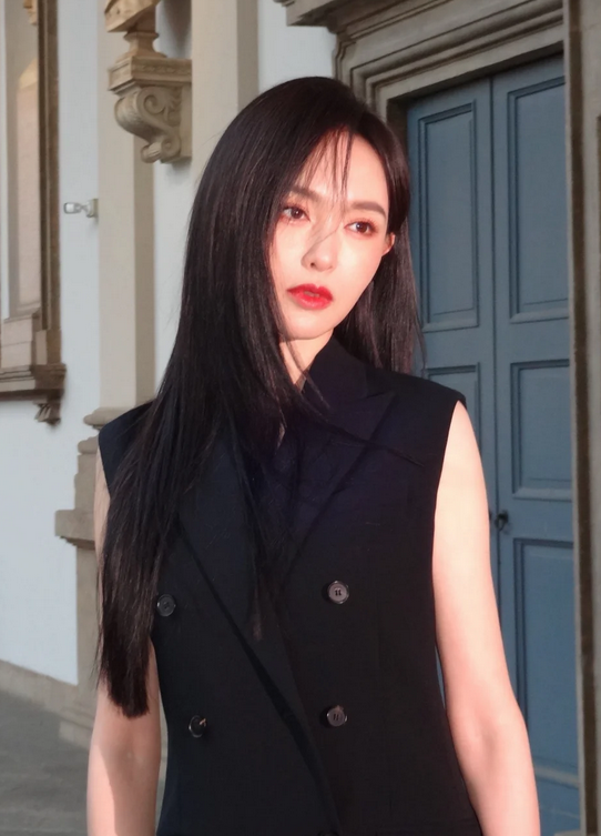 唐嫣工作室晒新照,黑长直的高冷范!