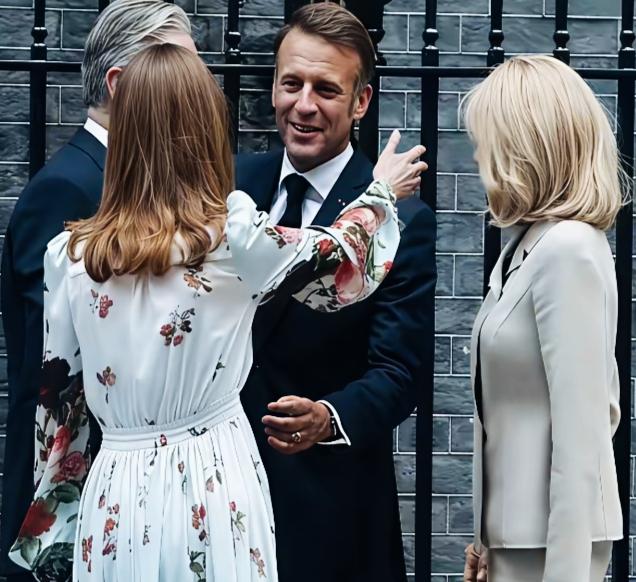 马克龙和斯塔默妻子聊的挺投入啊! 马克龙和斯塔默妻子除了礼节性寒暄,还聊什么话题呢? 马克龙此时满脸的笑容,完全忽视了一旁妻子布丽吉特的存在吧? 站在一旁的布丽吉特会是什么样的面部表情呢?内心在想什么呢?