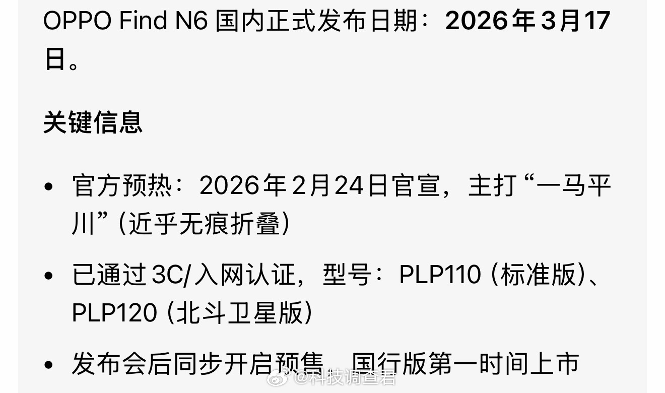 OPPOFindN6开始预约了橙色、钛色、黑色三款配色豆包预测3月17号发