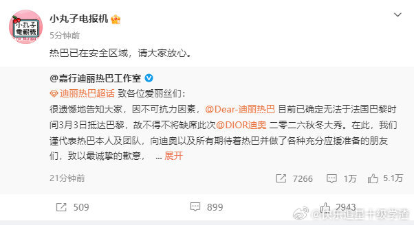 迪丽热巴将缺席时装周安全最重要