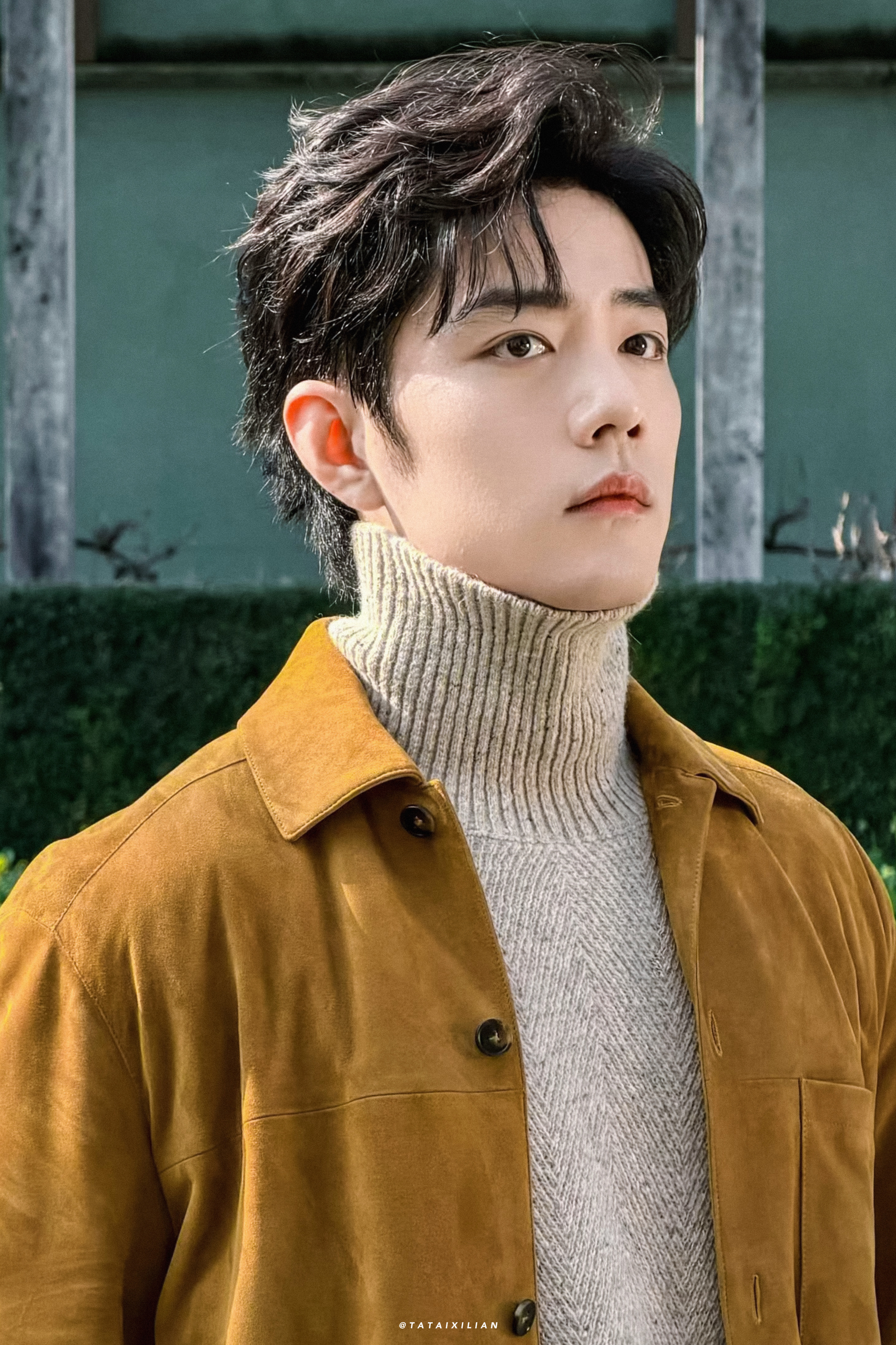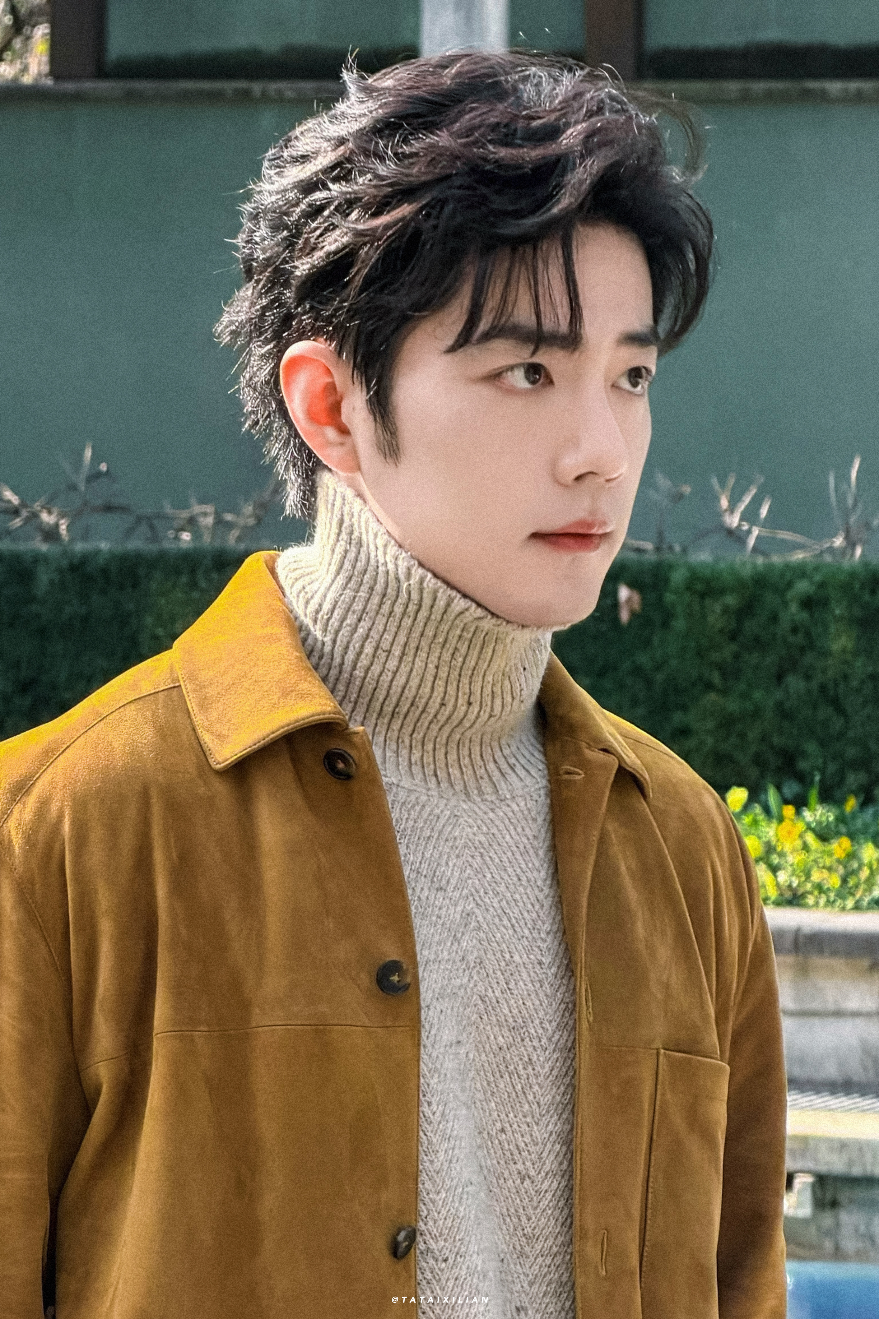 你是我心中的那头小鹿,每个心跳都让我为你着迷。肖战黑色亮面皮革◎肖战试衣服时的表