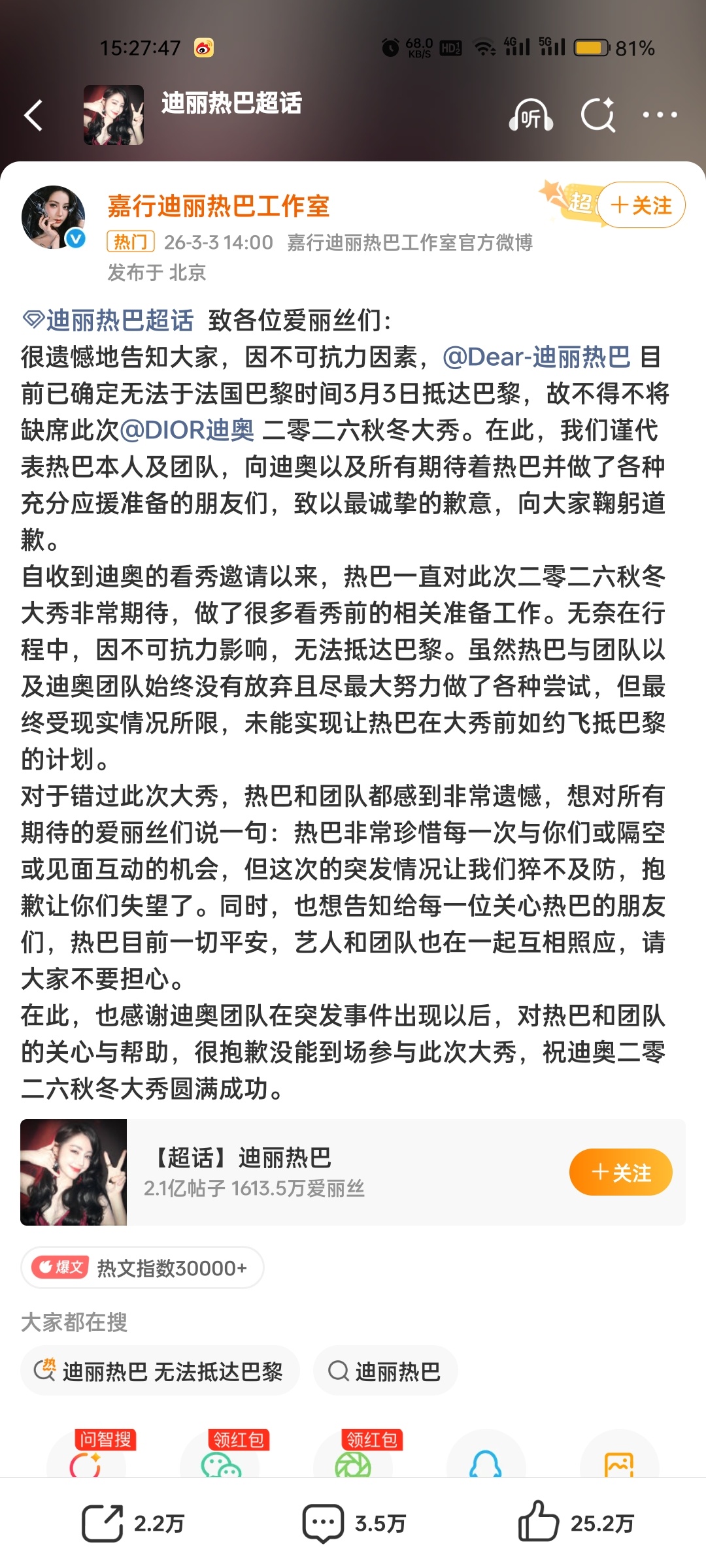 迪丽热巴 滞留迪拜不是???艺人不直达巴黎 工作人员全部直达巴黎 这是什么操作啊?这是什么狗公司团队啊??