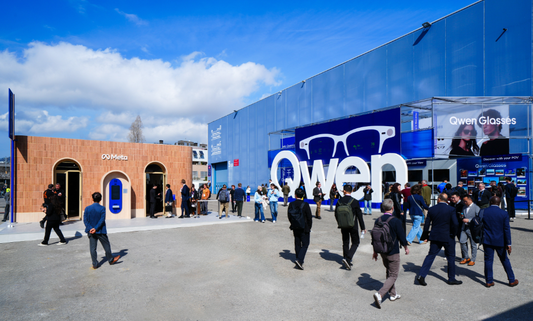 而且更有意思的是,千问AI眼镜的展台还比Meta的更大,尤其是千问还在展台门口竖起了一个高达5米的“Qwen”巨型标识。直接来了一波强势抢镜,把Meta的“风头”都盖过去了。