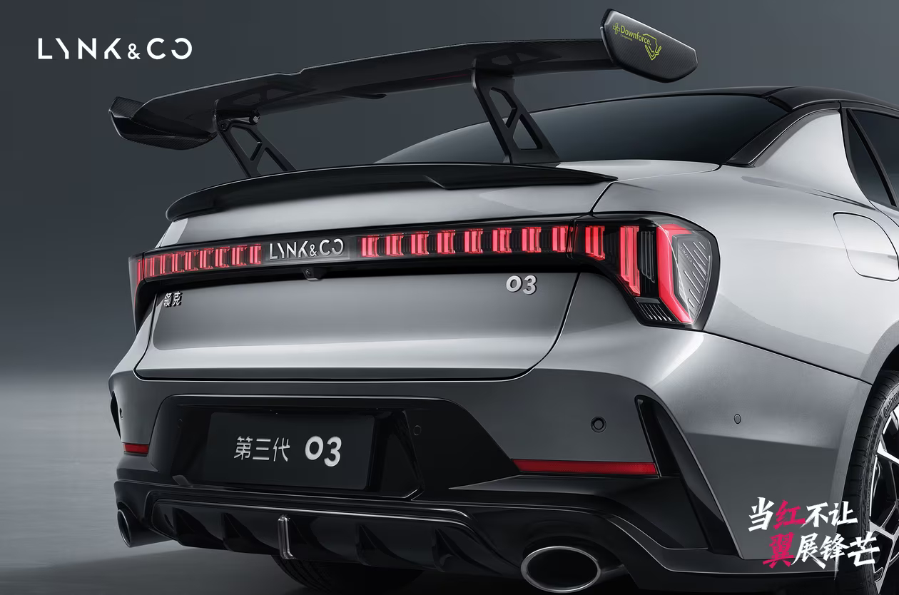 领克不愧是宇宙中掌管“下放”的神,领克03 2.0T版本直接下放大尾翼,侧面还有宁波赛道图,太键盘了!