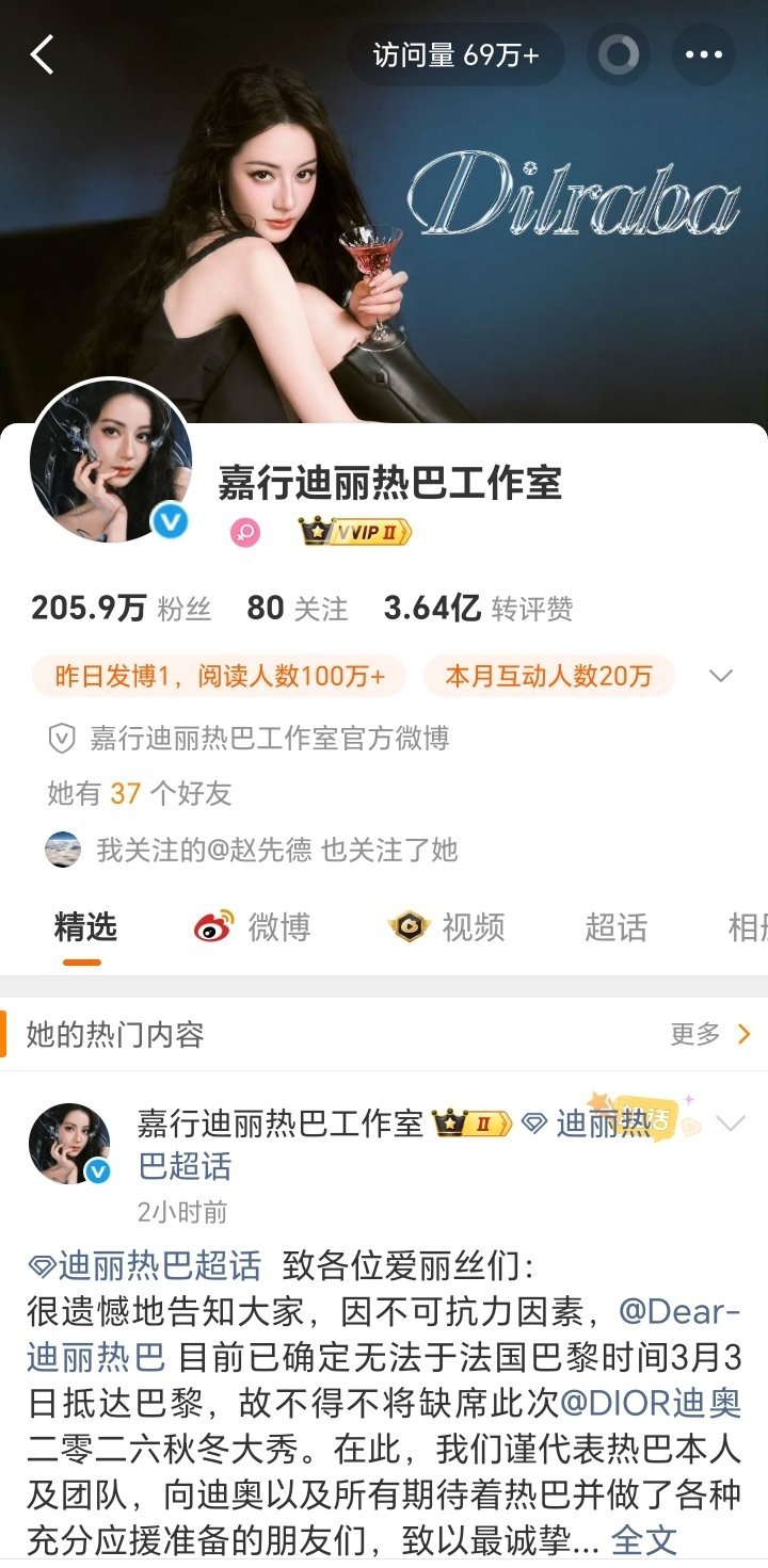 【迪丽热巴 滞留迪拜】2026年3月3日,14:00,迪丽热巴工作室发文道歉....