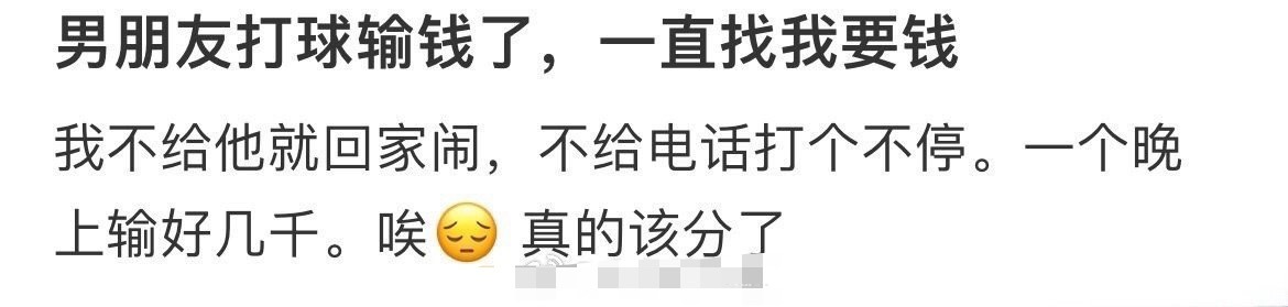 男朋友打球输钱了,一直找我要钱