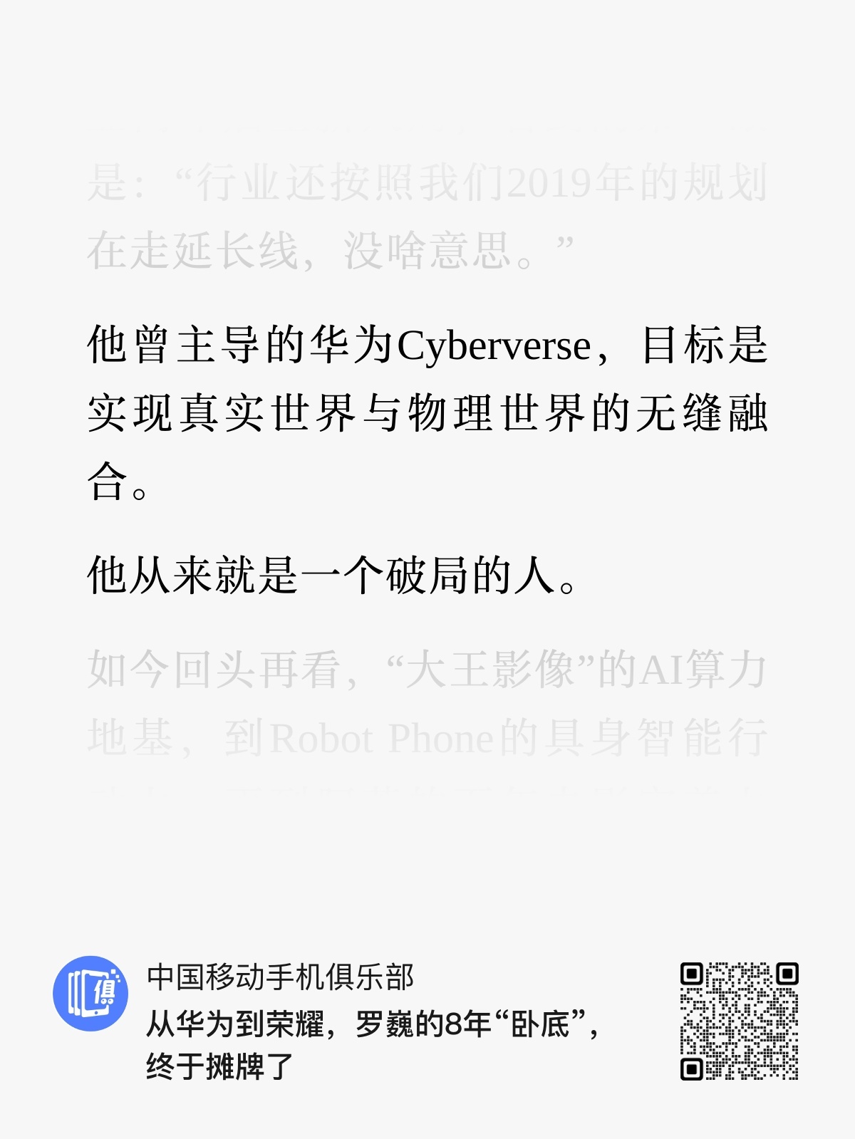 中国移动手机俱乐部给荣耀罗巍写了一篇报道