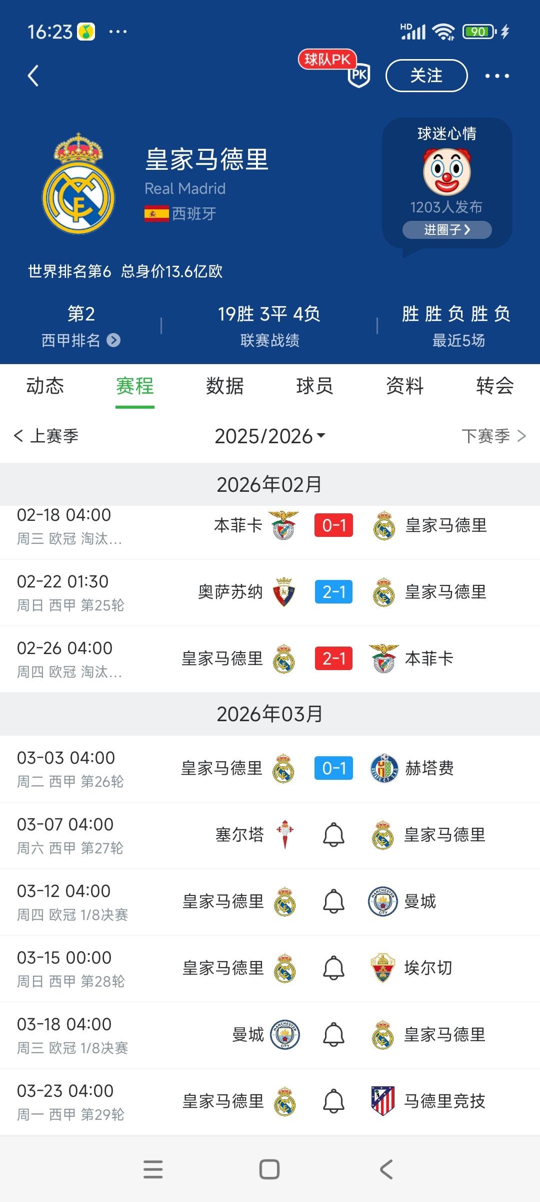 皇马要进入噩梦阶段了。 西甲两连败,落后巴萨4分,都是欧冠踢本菲卡耗费精力。 马上欧冠踢曼城更难缠,估计被淘汰。 大概率赛季结束四大皆空呀。[可怜]