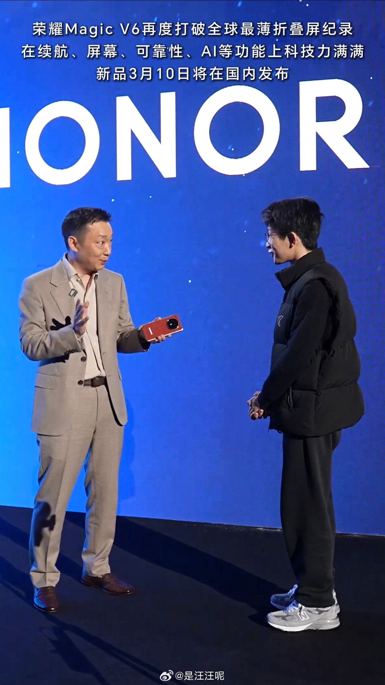 在MWC现场,何同学上手荣耀Magic V6后,直接狂夸“确实非常不错”~荣耀CEO李健还现场展示“摔手机”毫发无伤!