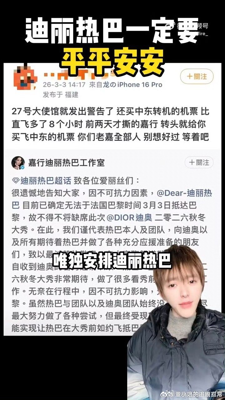 迪丽热巴粉丝质问迪丽热巴团队迪丽热巴 滞留迪拜这么大的纰漏团队真的难辞其咎,团队做事真的有点不靠谱了,希望热巴可以顺利离开迪拜,平安回国呀迪丽热巴