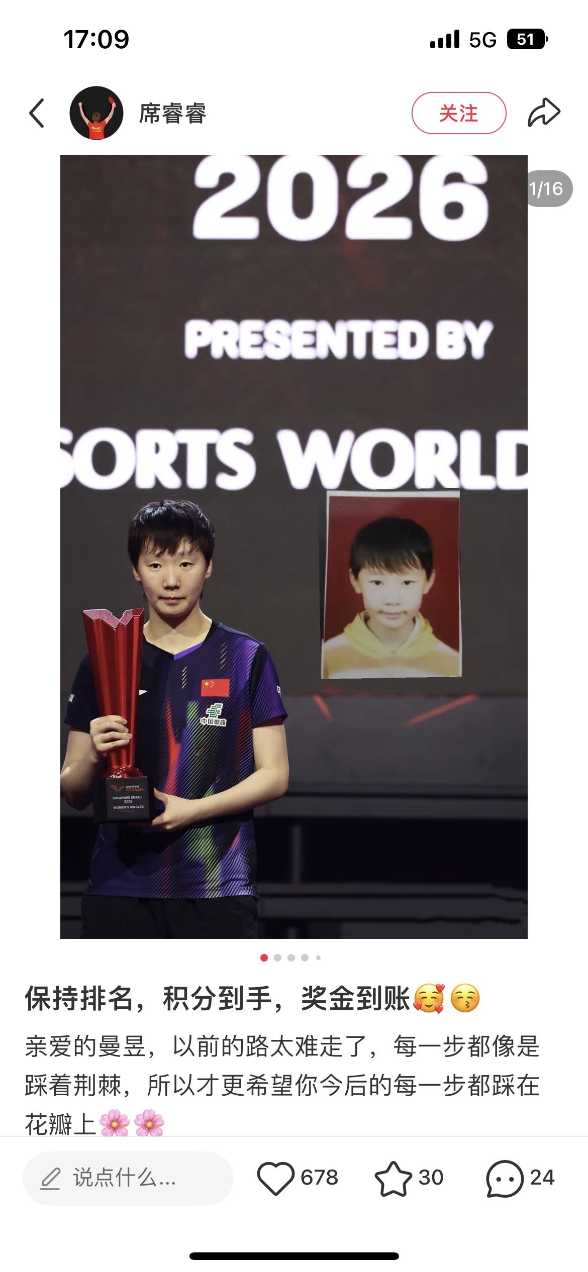 王曼昱哪是没拿冠军呀,王曼昱明明是赢了整个战场! 这站新加坡大满贯她虽没捧起奖杯,可把各国一姐挨个收拾了。新加坡的曾尖3-0横扫,中国台北的郑怡静3-1赢下,韩国的申裕斌首局19-21输后连扳三局逆转,日本的张本美和4-2双杀保持11连胜,德国的温特4-1击败,外协的威胁全被她挡下了。 看她打球特别稳当,申裕斌那场首局输了不慌神,转头变招加强前三板,连拿三局;对张本美和第五局被追平,第六局调整节奏稳稳拿下,关键分处理得比拿冠军的还稳。 这样的曼昱,谁能说她不是这站最大的赢家?