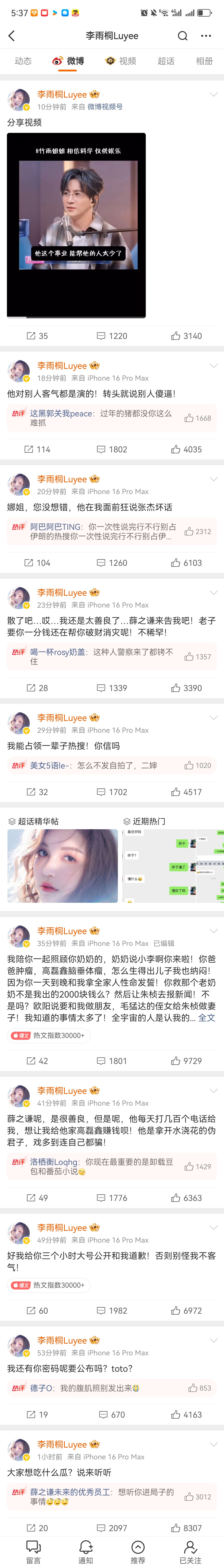 今天瓜好多啊我上蹿下跳的在吃本来是李雨桐撕薛之谦,好像也很多人不当一回事儿,谁
