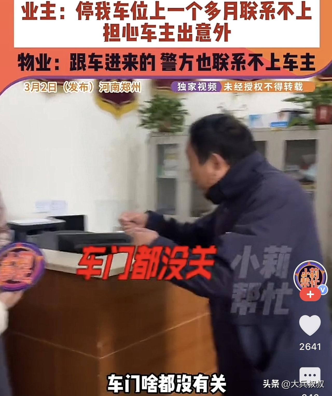 河南郑州,一业主发现自家的车位上停着一辆陌生人的车子,询问物业得知,这部车子是跟车进来的,随后业主报了警,可是警方也表示联系不上车主,就这样,业主索性将车轮上了锁,然而车子停在了车位上一个多月却始终无人联系业主。 据这名业主表示,其私家车上有一辆白色的江苏牌照的SUV,占用自家的车位一个多月了,却始终联系不上车主。 后来联系物业,得知车子是跟车进来的,而且,车主停车之后也没有锁车,于是,业主便在车子前轮上加上了车锁,希望车主看到后能够联系自己。 结果过去了一个多月,车主始终没有联系业主,报警之后,民警表示也查询不到车主联系方式,无奈,这部车子就这样一直静静地停在了这名业主的车位上。 因为担心车主是不是出了意外,于是,业主联系上了媒体帮忙,希望媒体能找到车主将车子开走。 事发后,网友就表示,你把车子砸了,你看看车主会不会出现。 还有网友说,之前喝酒断片了,把车子停在了地下车库,朋友把自己送家去后,醒酒之后怎么也记不清了车在哪,过了一个月才找到。 也有网友说,有移车神器,可以把车子拖到不碍事的地方先停着,等车主出现再说。 其实,把车子移到一个相对不碍事的位置,才是解决之道。 毕竟,如果业主擅自损坏车辆,导致车辆有任何财产损失的,那么,业主的行为就算是故意毁坏财物的行为,如果损坏的数额超过5000元,对此是要按照故意毁坏财物罪追究刑事责任的。 一般情况下,可面临3年以下有期徒刑的处罚,即便情节轻微,也要按照治安管理处罚法的规定,处以行政拘留以及罚款的处罚。 那么,车子停在自家的车位上,自己难道就这么忍了? 民法典规定,合法权益受到侵害,情况紧迫且不能及时获得国家机关保护,不立即采取措施将使其合法权益受到难以弥补的损害的,受害人可以在保护自己合法权益的必要范围内采取扣留侵权人的财物等合理措施;但是,应当立即请求有关国家机关处理。 所以,业主是可以采取锁车的方式,限制车子驶离的,但是要在第一时间报警求助国家机关处理,有关部门在确定车子主人后,也就是说,业主在得知对方身份后,是可以将其放行,并有权要求车主承担赔偿责任的,即可参考车位的占用费支付赔偿。 当然,为了能让这部车子不再碍事,完全可以在物业的协调下,暂时将车子移到不碍事的地方,等待后续车主出现再协商开走赔偿的事情,其实,就算移动到不碍事的地方,车主之后虽然不再向车主支付赔偿,但是,也要向物业支付停车费用的。 不管怎么说,作为业主来说,遇到这种事情,还是要冷静处理,不要贸然选择砸车、撒气堵排气筒的方式出气。 对此,你对本案有什么看法? —————————— 关注我,带你评析法律热点,关注冷暖人生。 文章原创,抄袭必究
