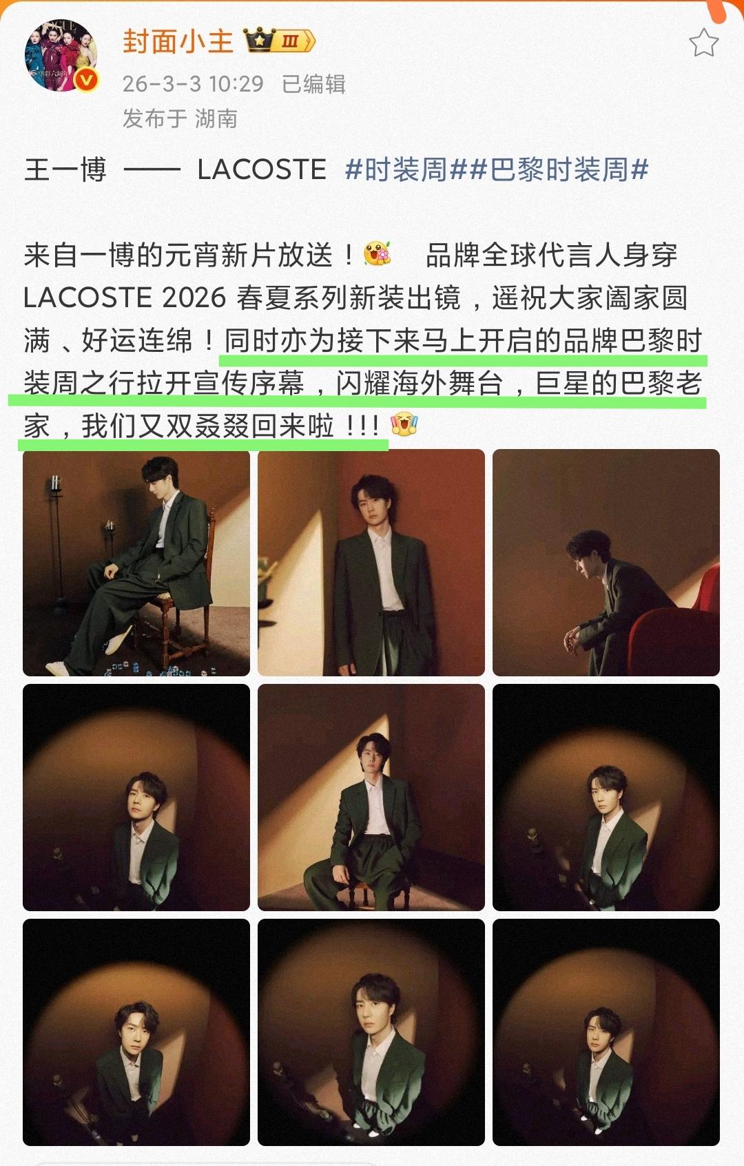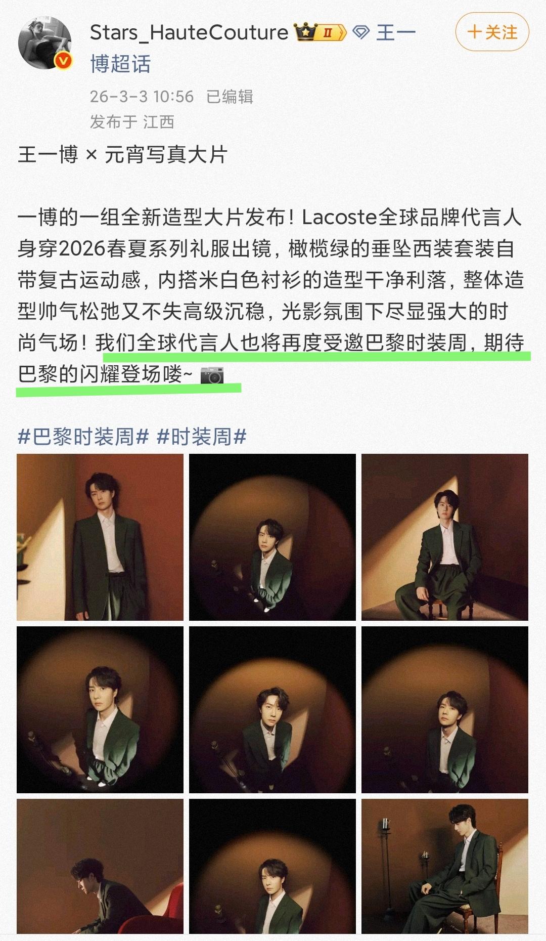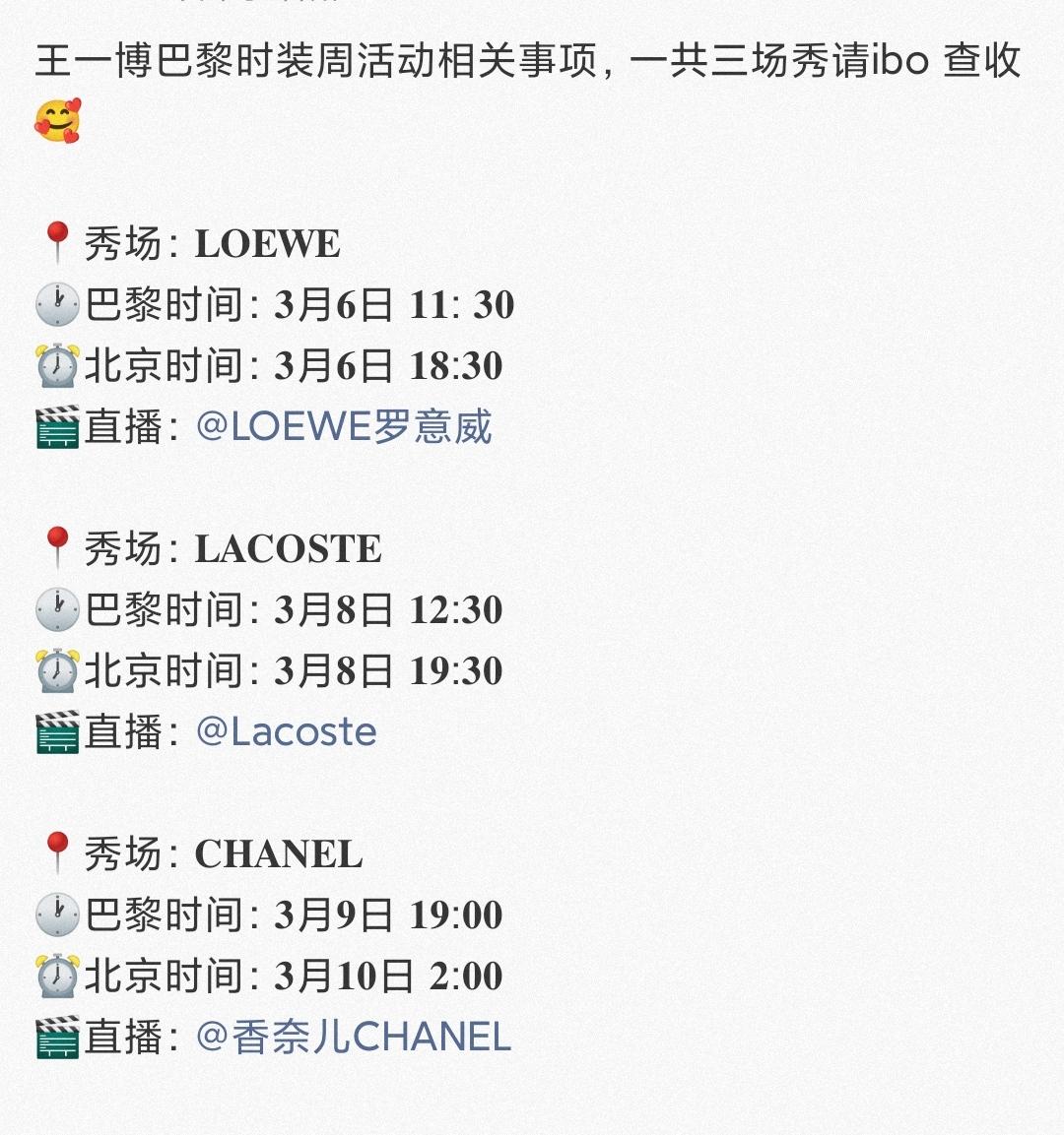 王一博巴黎时装周行程🈶!摩托姐姐们准备好追星啦!!! 又一次真正的三奢最高代言并行闪耀巴黎,有且仅有王一博。 时尚博主们都已经躁动起来了,都在翘首以待时尚宠儿、国际巨星王一博闪耀海外舞台,叱咤巴黎。 王一博