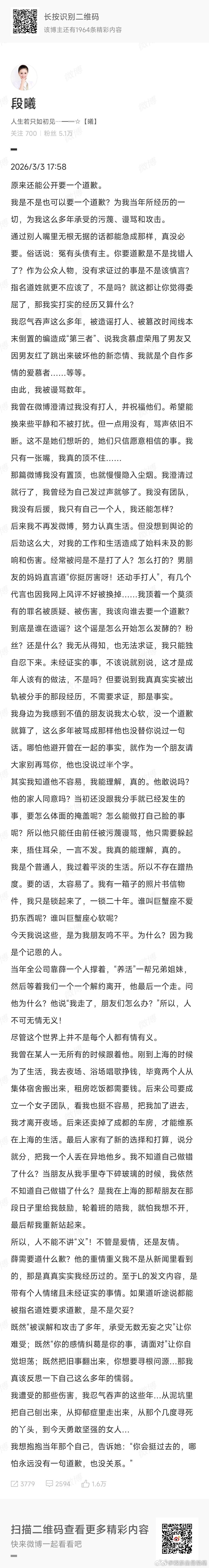 张杰前女友段曦也出来发长文回应了,看她的回应,张杰和她分手分的不是很开心。 张杰前女友 被出轨是事实 谢娜真的不该出来回应。