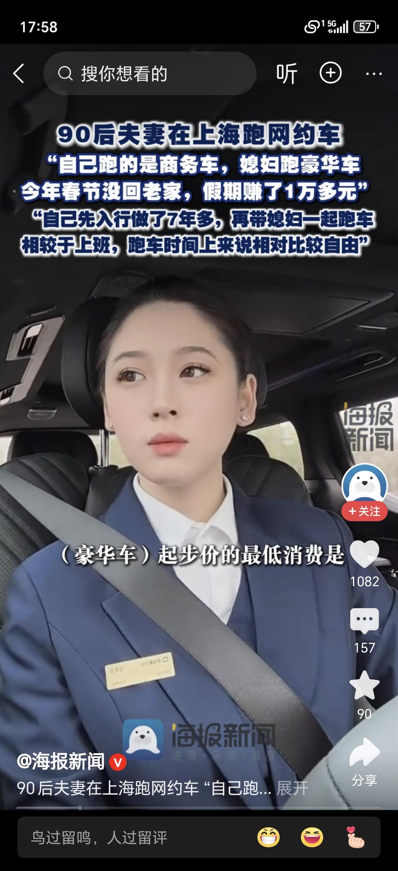 春节本该是阖家团圆的时刻,上海一对90后夫妻却没回老家,而是坚守在网约车方向盘前,用七天的奔波,挣下了上万块的收入。 今年春节不少网约车司机返乡,上海城区运力紧缺,不仅订单源源不断,还有平台的春节补贴,夫妻俩商量后,决定留沪抓住这个赚钱的机会。 为了最大化利用时间,他们轮班开车,人歇车不歇,白班夜班无缝衔接,从清晨到深夜,车里始终有一个人在奔波接单。 他们没有像样的年夜饭,饿了就在车上简单吃点干粮,累了就找路边短暂停靠休息,全程不敢松懈,只想多跑一单、多赚一点。 七天连轴转的付出终有回报,扣除充电费、平台抽成等所有开支后,两人的净收入稳稳超过一万元。 他们说,累是真的,但看着靠汗水换来的收入,想到能为家庭多攒些积蓄,所有辛苦都觉得值得。 这就是平凡打工人的坚守与努力。你过年是回家团圆,还是坚守岗位打拼?你觉得春节不回家赚钱,值得吗?