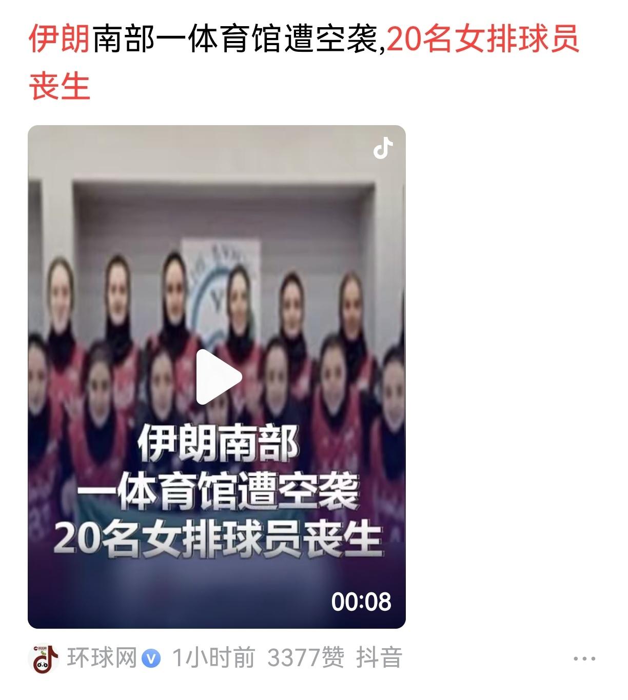伊朗 20 名女排姑娘丧生!看到这一消息,我瞬间泪目,打字的手在打颤!当地时间 2026 年 2 月 28 日,伊朗南部法尔斯省拉默尔德市的一座民用体育馆,被导弹精准击中。 彼时,馆内正进行青年女排的日常训练,二十名球员身着训练服,在球场上完成最后一组扣球练习。 她们的年龄在 17 岁至 24 岁之间,是当地青年梯队的核心力量,已确定参加下月的省级锦标赛。 导弹爆炸引发场馆主体结构坍塌,烟尘与混凝土碎片瞬间淹没训练场,二十名姑娘的生命戛然而止。 现场还有未成年人在馆内活动,部分人在袭击中受伤,救援人员抵达时,场馆已化为一片废墟。 伊朗排球协会当天晚间公布完整遇难名单,其中包括一名 19 岁的国家青年女排集训队二传手。 她们的教练在坍塌中被砸中,身受重伤,被紧急送往医院重症监护室,尚未脱离生命危险。 遇难者家属陆续赶到现场,辨认遗体时的哭声此起彼伏,多位家属情绪崩溃,需医护人员全程协助。 拉默尔德市政府第一时间设立善后接待中心,为家属提供住宿、交通与心理辅导,全力安抚破碎的家庭。 这场悲剧的重量,远不止二十个年轻生命的消逝。 空袭当日,拉默尔德市另有 4 处民用设施遭袭,涵盖居民住宅与公共建筑。 伊朗西北部东阿塞拜疆省同日遇袭,官方通报显示,该地区已有 6 人死亡、45 人受伤。 伊朗红新月会 2 月 28 日晚间发布统计,此次空袭已造成全国 24 个省份 201 人死亡、747 人受伤。 救援工作仍在持续,瓦砾堆的搜救与伤员救治同步推进,伤亡数字存在继续上升的可能。 体育场馆本应是远离战火的净土,如今却沦为打击目标,这一事实刺痛了全球关注和平的人们。 联合国秘书长古特雷斯在袭击当日迅速发声,呼吁所有相关方严格遵守国际法,尊重并保护平民安全。 他强调,军事行动只会加剧对抗,各方必须尽快回到谈判桌前,通过对话解决分歧。 中国常驻联合国代表傅聪 2 月 28 日在安理会紧急会议上发言,对大量平民伤亡深感痛心。 中方明确敦促各方立即停止军事行动,避免局势进一步升级,愿同国际社会一道劝和阻战。 这些女排姑娘的梦想,本应在赛场上绽放。 她们用日复一日的训练追逐热爱,用青春年华书写对排球的执着,却被战火无情斩断了未来。 这场灾难不仅摧毁了一支整装待发的球队,更击碎了一座城市的体育希望,让无数家庭陷入无尽悲痛。 当年轻的生命成为冲突的牺牲品,当民用设施接连沦为战场,我们不得不追问,这样的代价何时才能停止。 愿二十位女排姑娘安息,愿战火早日熄灭。 愿每一个心怀梦想的人,都能在和平的阳光下,自由奔跑、尽情绽放。 信源:伊朗媒体:伊朗南部一体育馆遭空袭 20名女排球员丧生-云南网