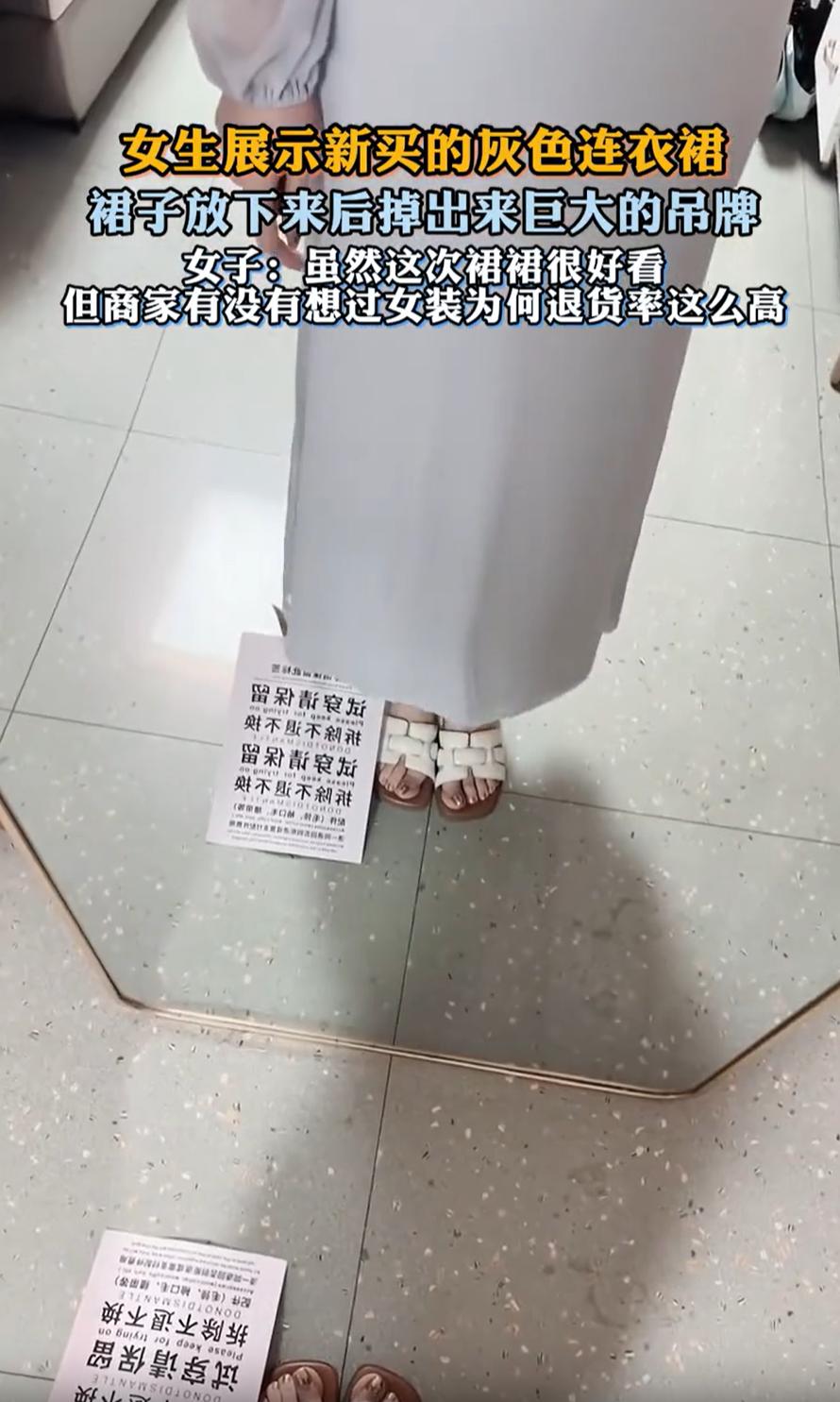 山西,女子网购了一件连衣裙,回到家试穿时觉得还不错,不料,看到巨大的吊牌后,瞬间没有了兴趣,还发文吐槽商家:有没有想过女装为何退货率那么高?结果被网友回怼:商家有什么错? 视频中,女子穿着刚买的灰色连衣裙,站在镜子前试穿,本来大小、版型自己都比较满意,可裙子放下来的一刻,一个大大的吊牌也跟着一起掉下来,上面还用大字写着:试穿请保留,拆除不退不换 女子表示,自己都被气笑了,本来这次裙子很好看,但看到吊牌就有了退货的心情,还让商家好好反省一下 虽然女子生气,但这次网友都站在商家这一边 有网友说:商家就应该这样。出去玩排队的时候,有个女的把未撕掉的牛仔裤标签放在后屁股兜里,当时就觉得无语,你都穿出来玩了,你还打算退了啊,穿一天了咋好意思退的 还有网友说:这也不影响你试穿,难道不是要剪吊牌吗?跟裙子有什么关系? 其实仔细想想,这件事的核心并不复杂。女士觉得吊牌上的提醒让她不舒服,好像被商家提防着,但问题是,这条裙子本身她穿着是合适的,也没有质量问题,吊牌也没影响她试穿。她真正在意的,可能不是衣服本身,而是那种被规则约束的感觉 可现实是,正是因为有太多人把无理由退货玩成了穿完就退,才逼得商家不得不用这种笨办法来保护自己。吊牌上写的那句话,看着像警告,实际上是商家的无奈之举。如果大家都守规矩,谁愿意在衣服上挂个这么大的牌子破坏美感 归根结底,互相理解才是长久之道。商家把规则说在前面,虽然生硬,但至少透明。消费者如果真喜欢一件衣服,就别把它当成一次性的道具。穿得合适就留下,不合适就及时退,别把七天无理由当成免费租赁。只有这样,买卖双方才能都舒服一点