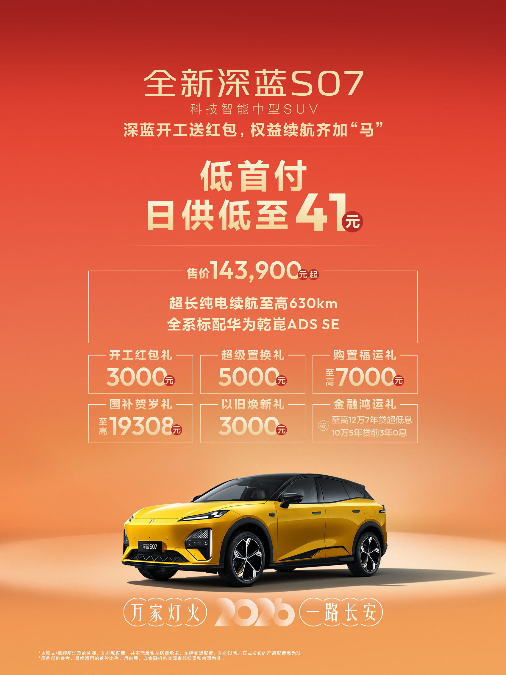 打工人通勤神器!深蓝长续航+开工红包双重加持,太懂我们了~ 每天上下班通勤、周末跨城出行,续航够长、补能够快才是真省心。深蓝S07、S05 EV、L06开工红包3000-5000元直减,现金优惠看得见摸得着。叠加置换、购置税补贴、国补、以旧换新,省钱力度直接拉满。S07纯电630km、S05纯电620km、L06纯电670km,长续航轻松覆盖日常全场景,3C超充解决应急补能,智驾还能缓解驾驶疲劳。金钟罩电池2.0、磁流变悬架、激光雷达这些配置都有,安全与舒适双在线,金融7年超低息,月供无压力,开工焕新,选深蓝,通勤幸福感拉满!深蓝汽车 深蓝开工送红包